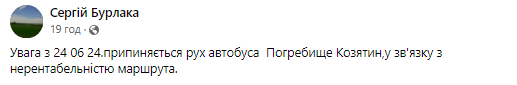 А днями у соцмережах опублікували повідомлення — з 24 червня автобус відміняють, через нерентабельність маршруту