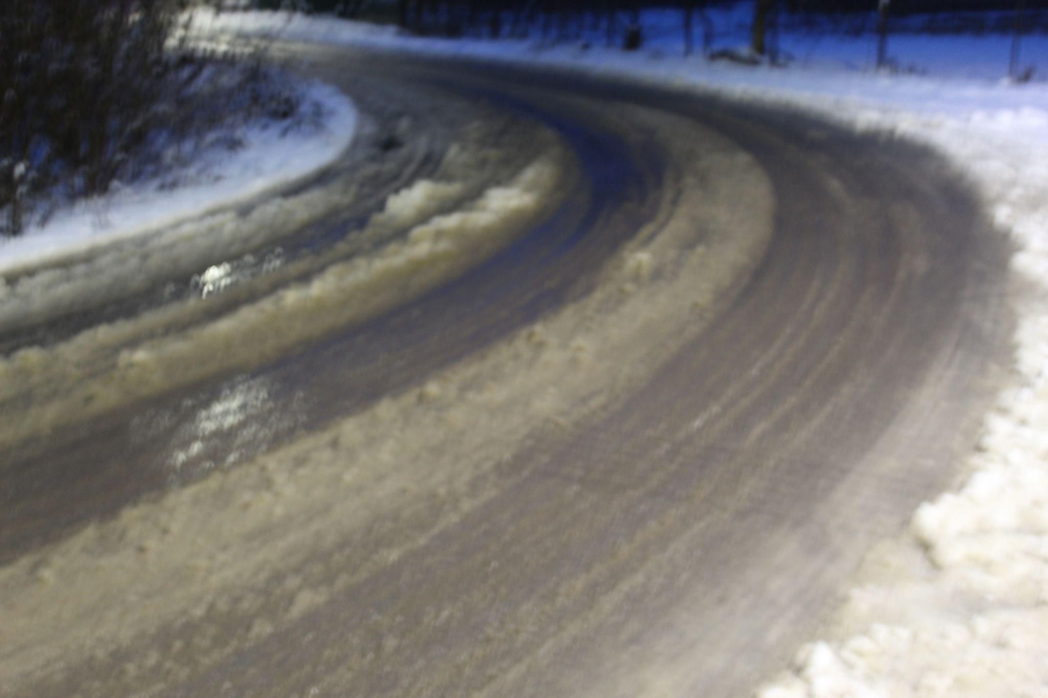 Перша автівка, яка пройшла після техніки комунальників розсікла колесами снігову кашу і не стало й знаку, що там до цього сніг прибрали.