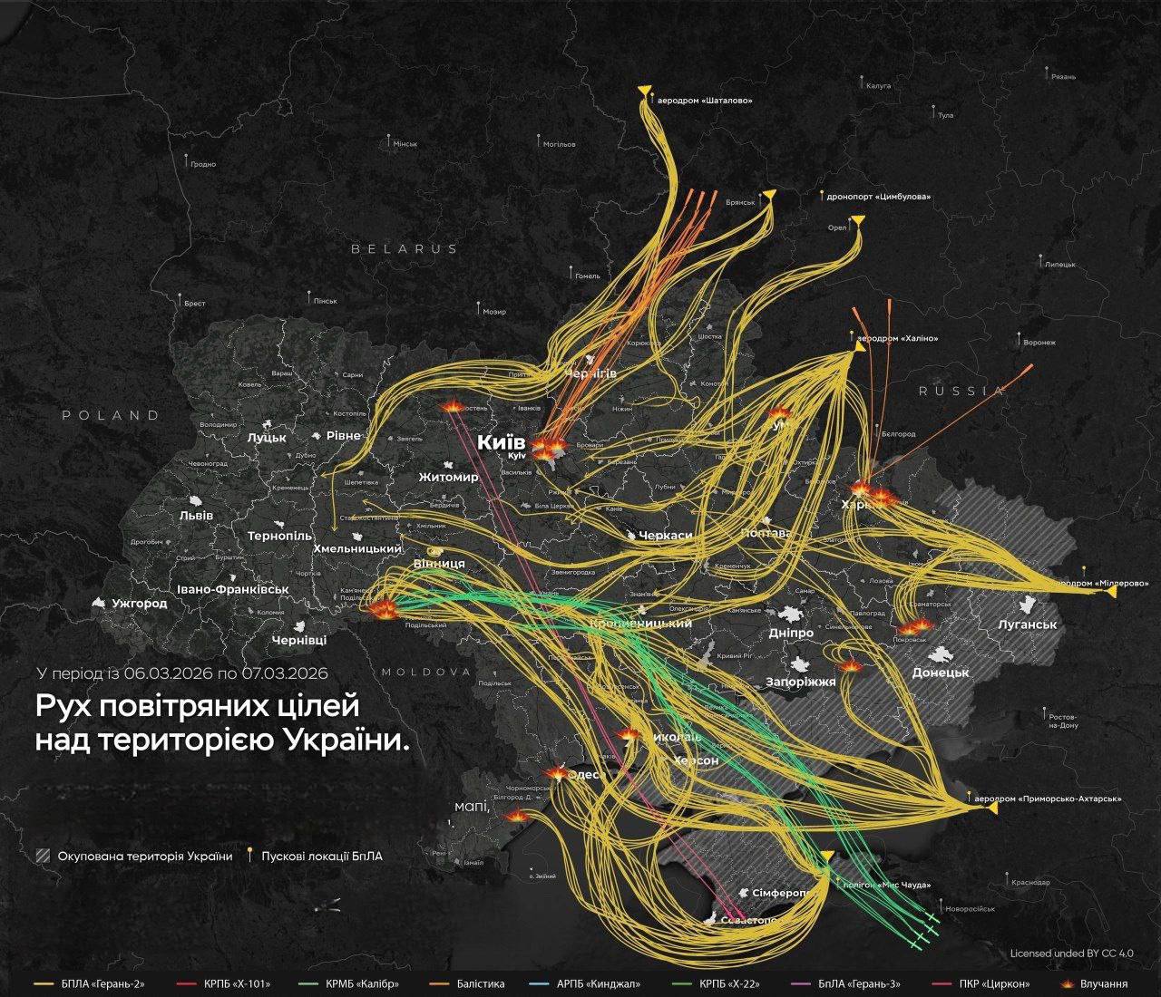 В ніч на 7 березня росія вчергове завдавала комбінованого удару по Україні. Над Вінниччиною фіксували ударні дрони, потім крилаті ракети.