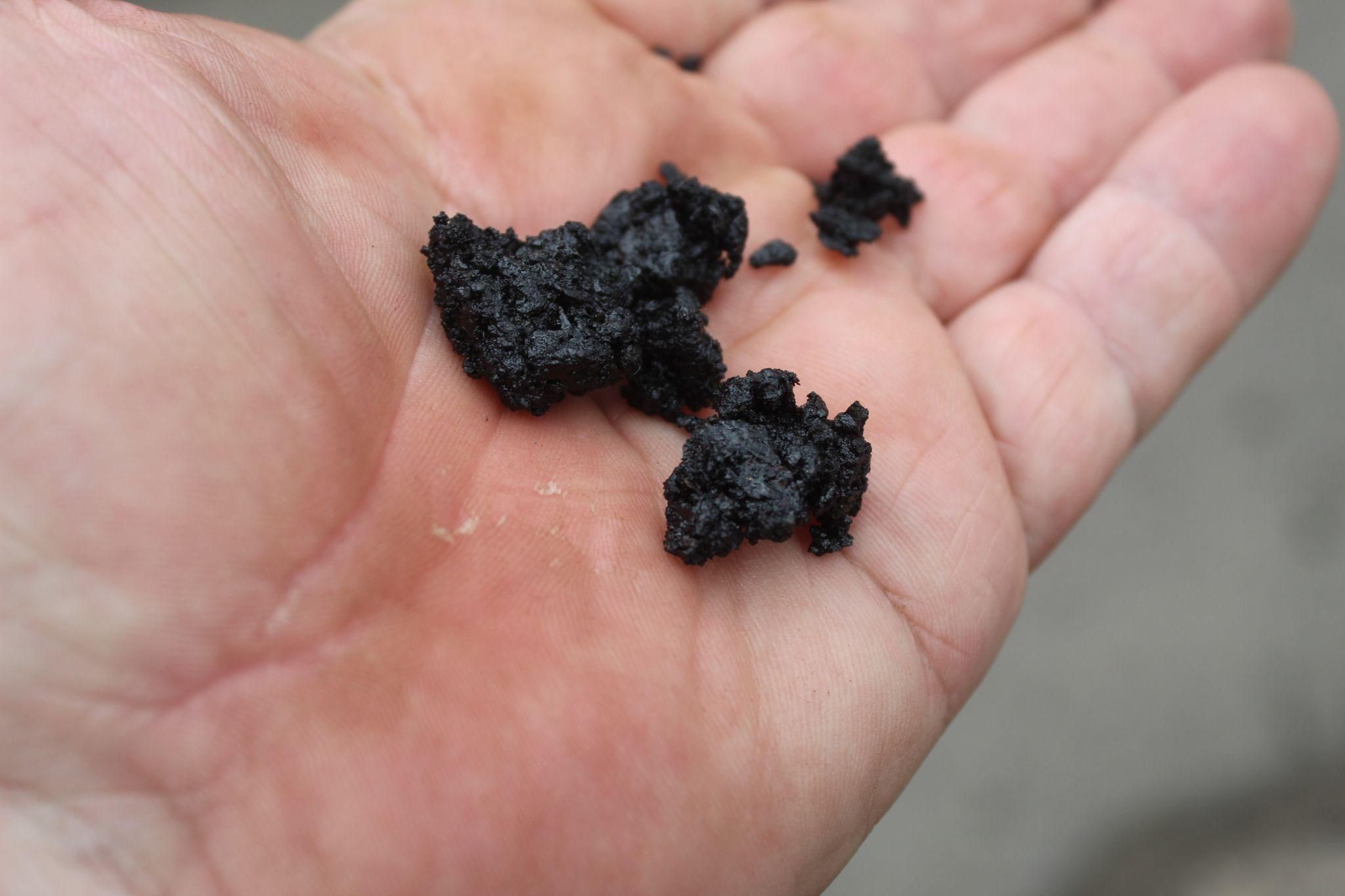 Пенсіонер Андрій Васильович до свіжо висипаного асфальту приклапв руку. Ми його запитали —ви хотіли перевірити чи достатньо бітуму в асфальті. Ні каже козятинчанин— Я хотів відчути температуру асфальту, коли руку можна тримати, то градусів 60–70 є