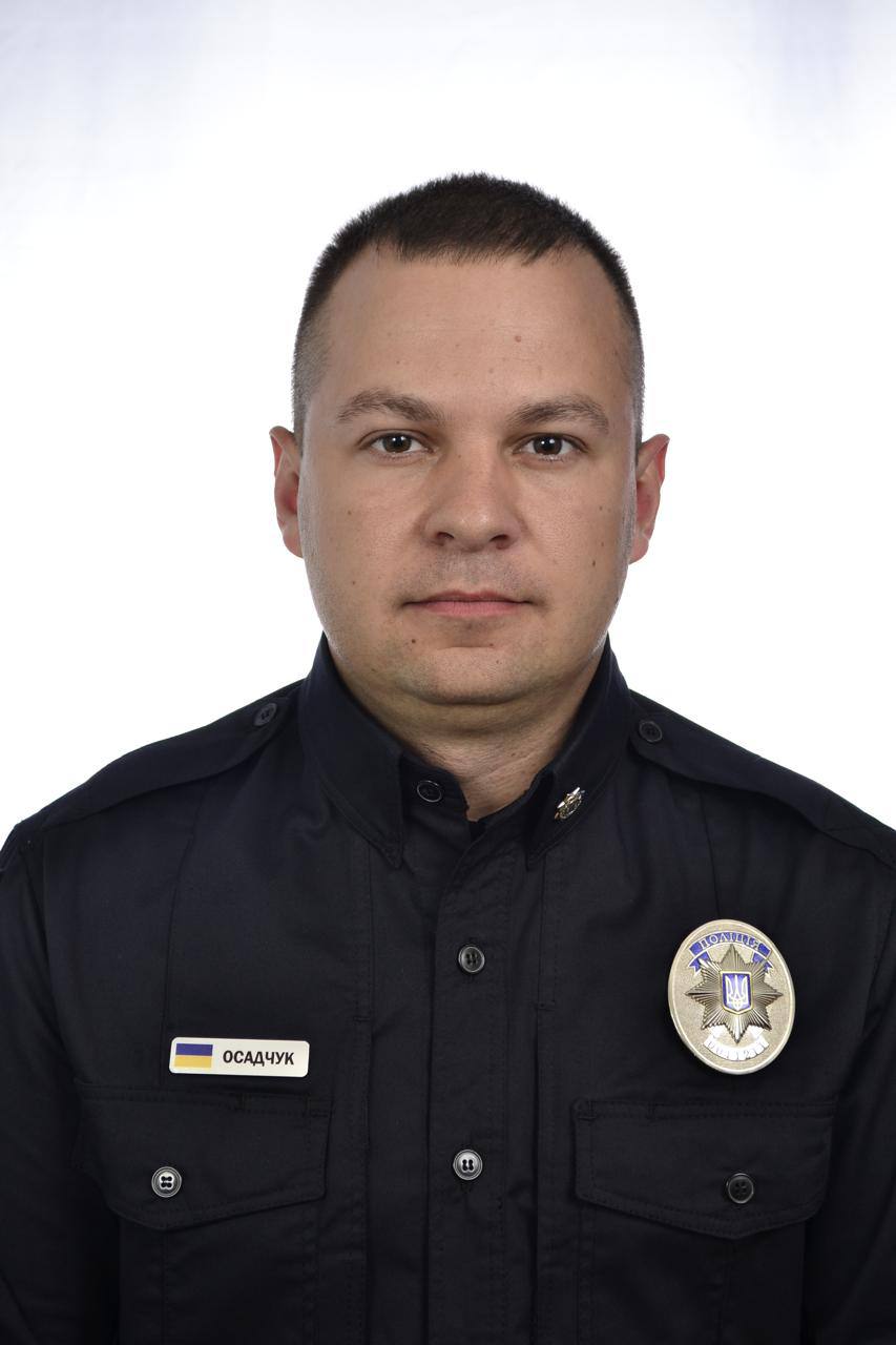 Юрій Осадчук, 33 роки. Народився у Вінниці. Після закінчення школи №8, вступив у політехнічний коледж. Отримав спеціальність «Інженер механік по транспортним засобам». Закінчив Аграрний університет, Харківський національний університет Внутрішніх справ за освітою «Право». З 2010 по 2011 роки проходив військову службу у внутрішніх військах. З 2012 по 2015 працював у міліції, в патрульно-постовій службі. Після цього пройшов на загальних засадах конкурс нової патрульної поліції, став інспектором патрульної поліції та отримав офіцерське звання лейтенанта поліції. Виконував обов'язки заступника командира роти патрульної поліції Вінницької області, був командиром роти, виконував обов'язки командира батальйону патрульної поліції Вінницької області. Приймав участь в АТО з 2014 року, є учасником бойових дій