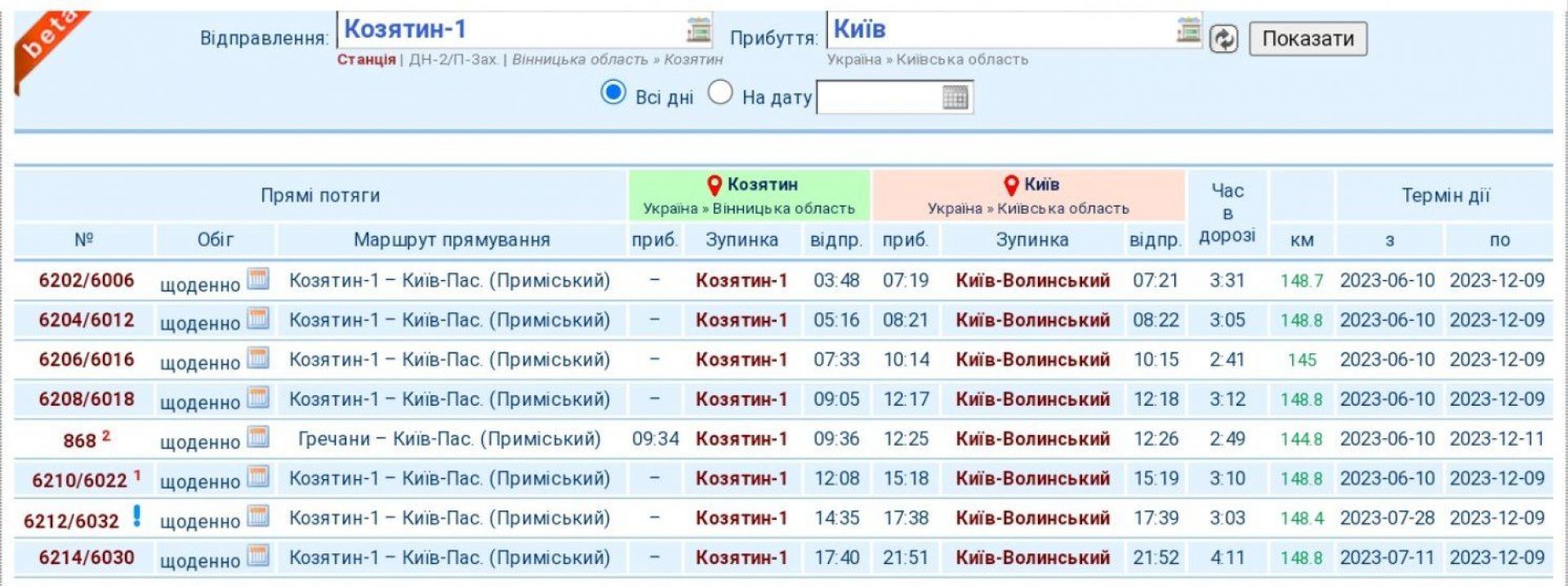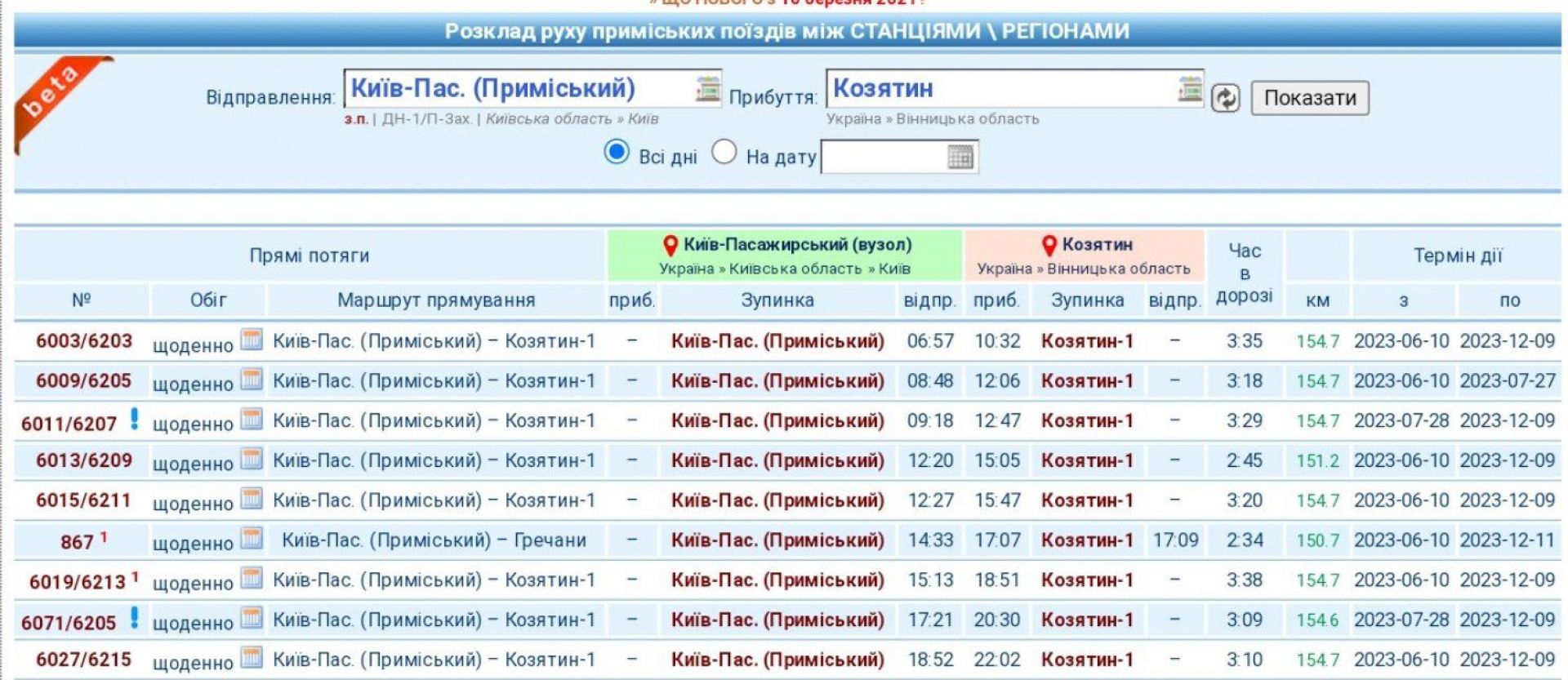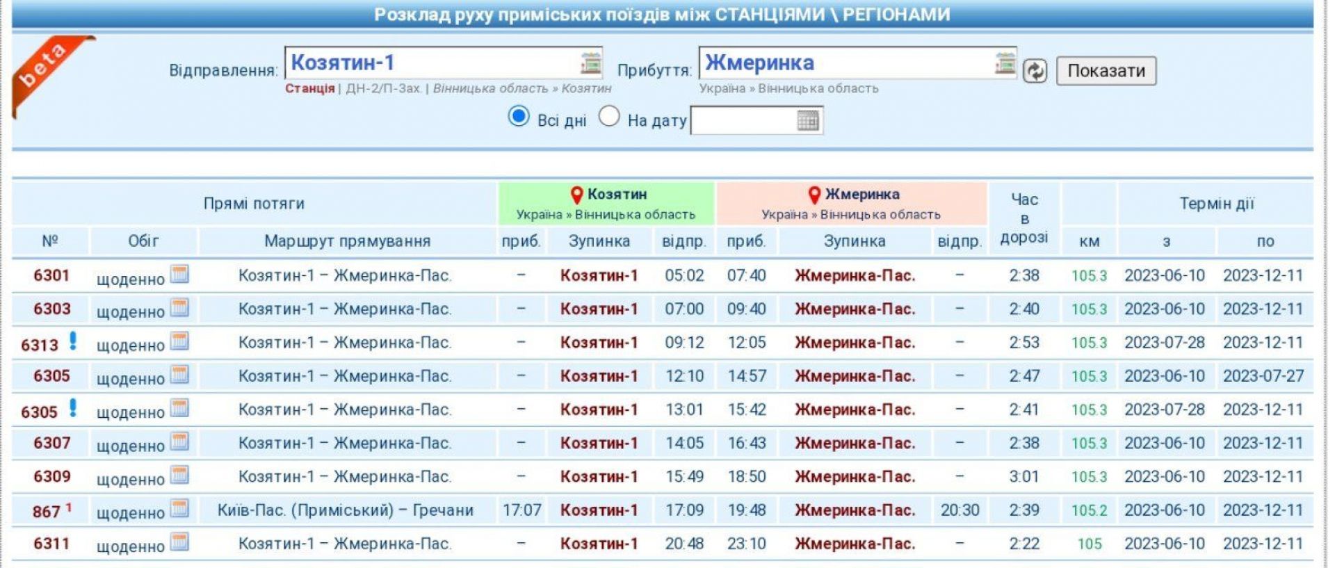 - електропоїзд № 6314 Жмеринка – Козятин відправлятиметься з Жмеринки о 05:40, Вінниця — 06:46-06:51, прибуватиме до Козятина о 08:25.
