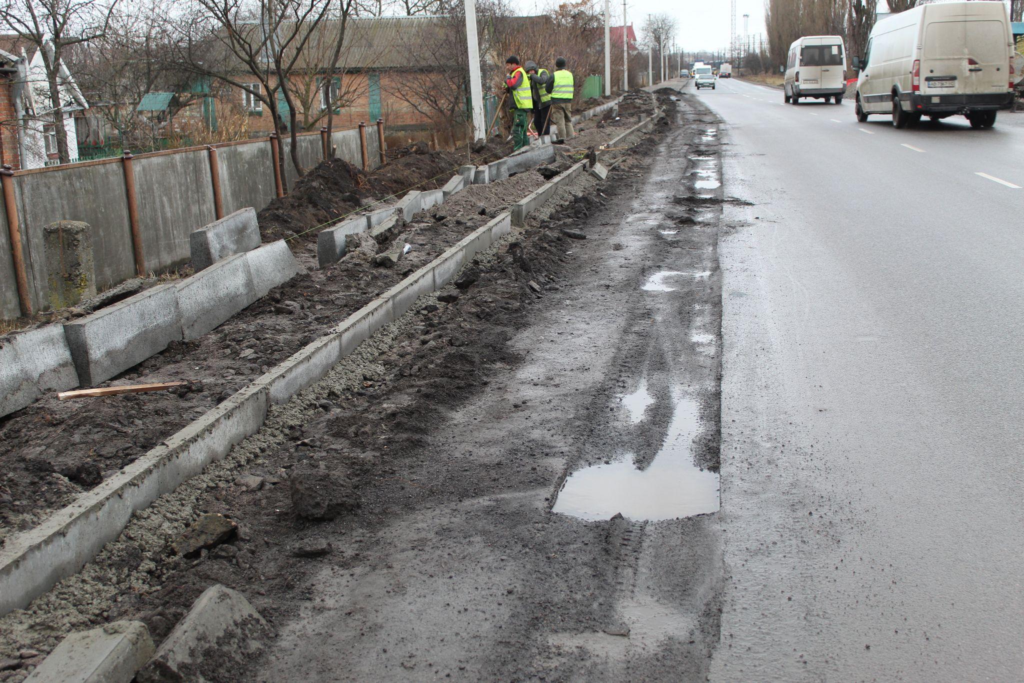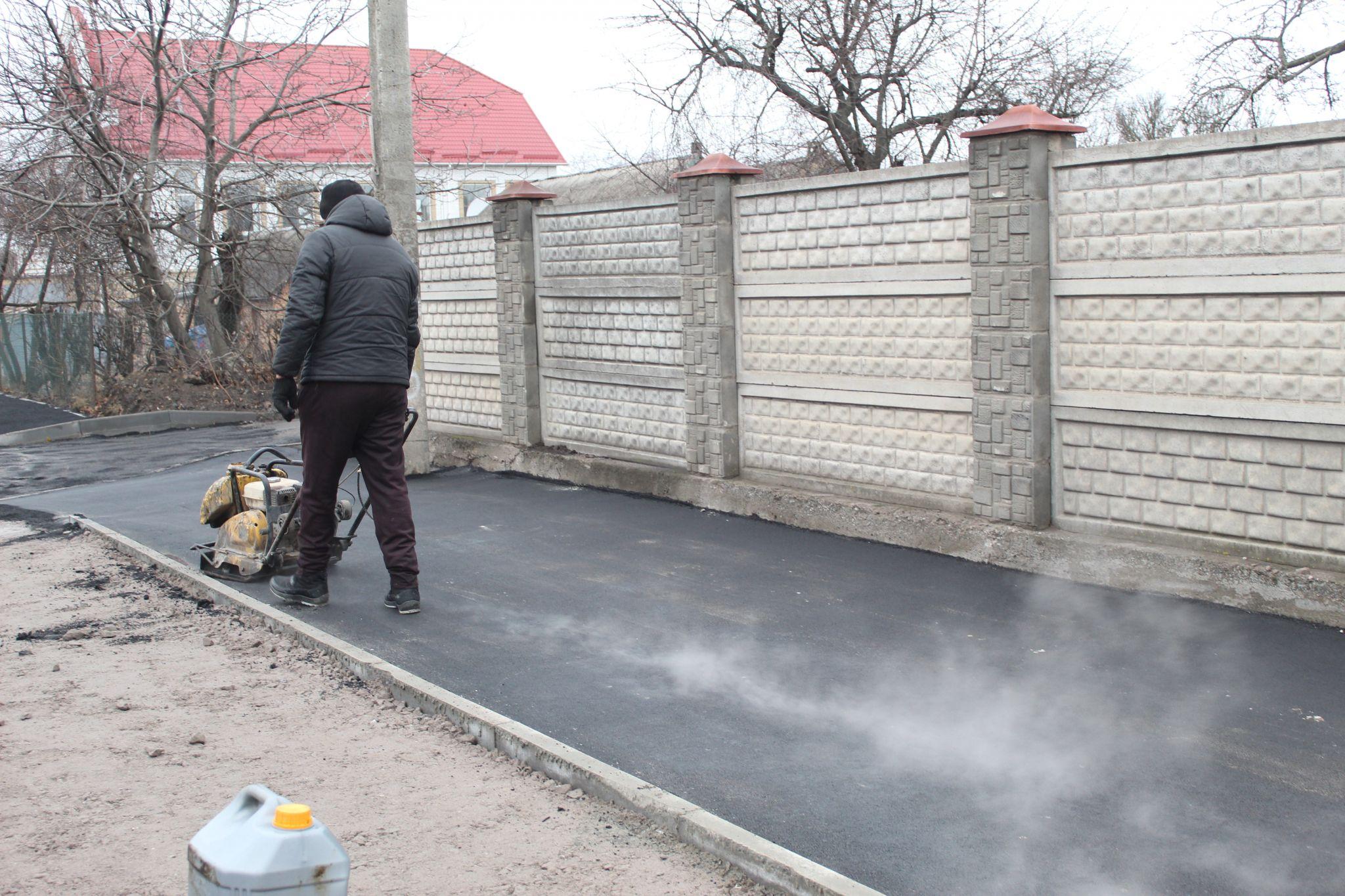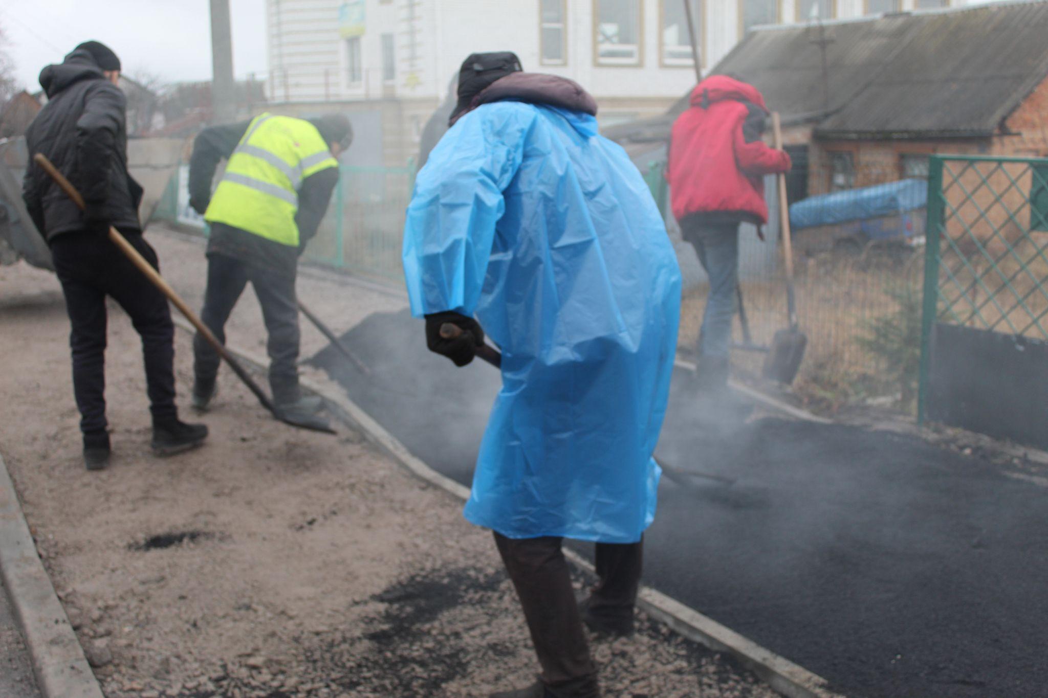 Фото дня: перехід до кущів, водовідведення у двір та асфальт у дощ — ремонт на Куликівського продовжується