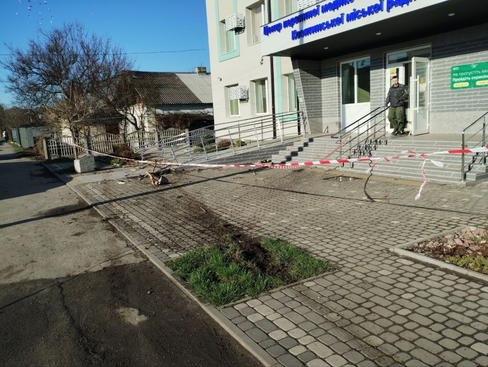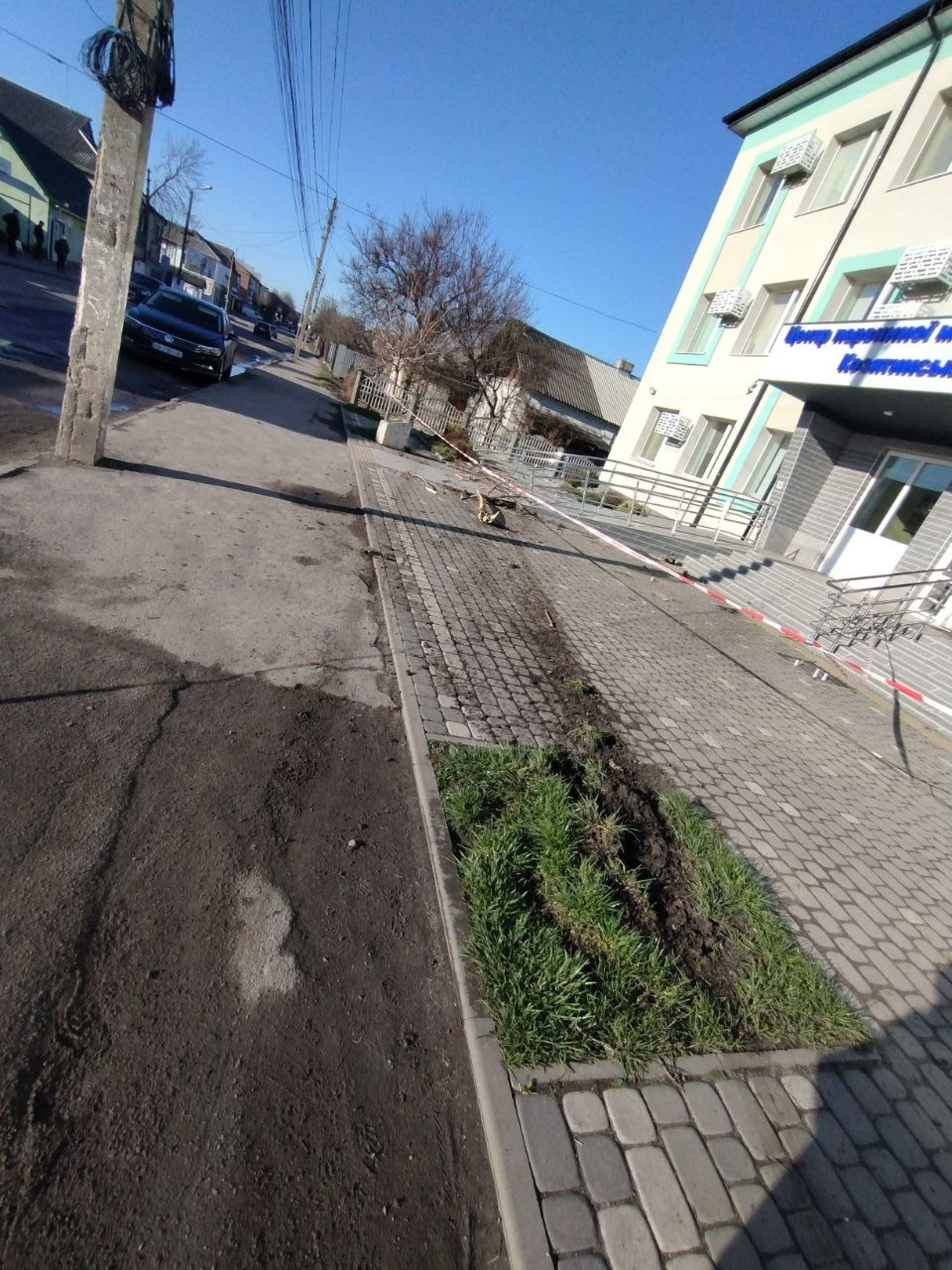 - Викорчуване дерево, погнутий пандус, пошкоджені клумби… Такий вигляд наразі має територія біля Козятинського міського центру первинної медико-санітарної допомоги.
