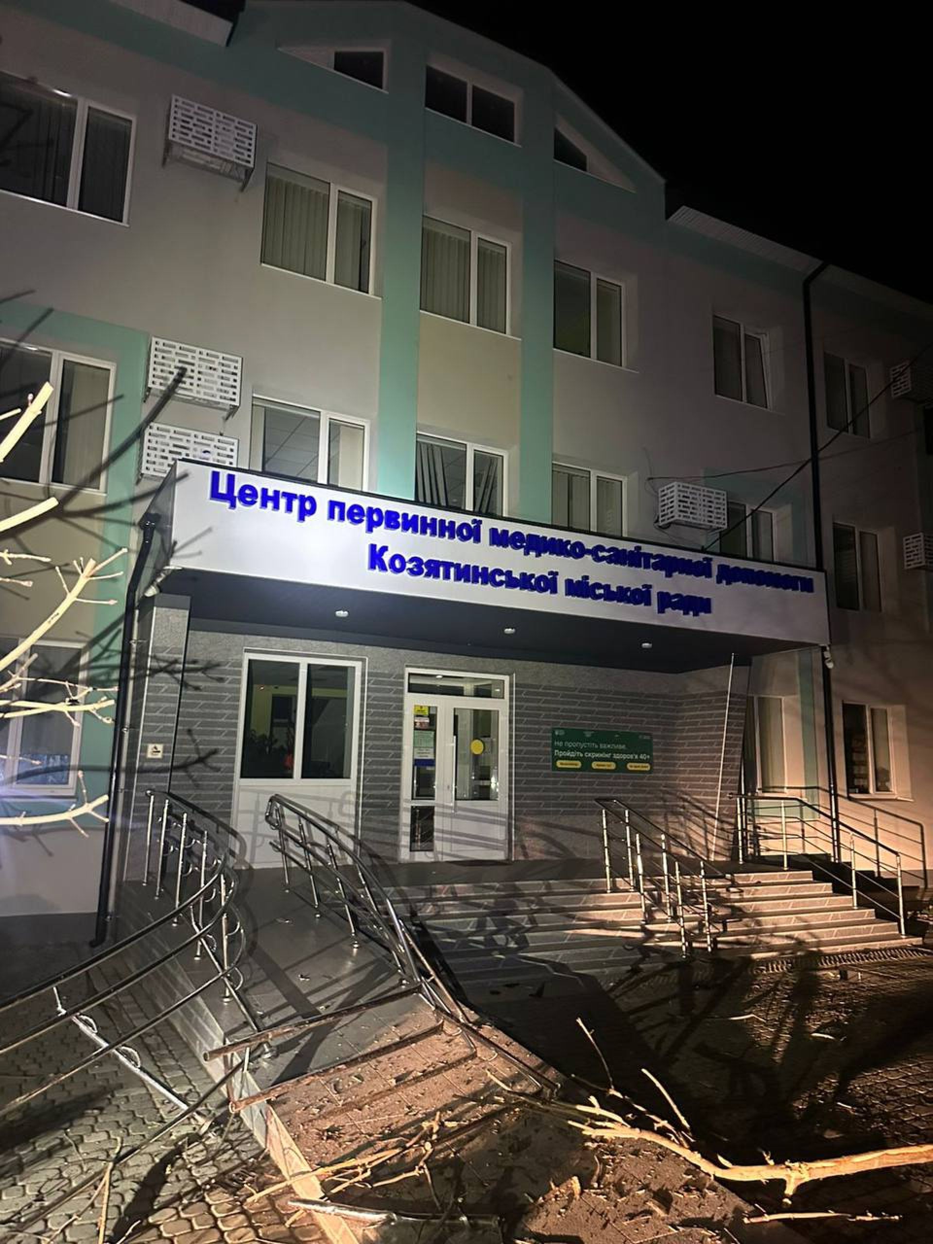 Вранці, 4 квітня місце ДТП на території «первинки» огородили стрічкою. Лежить зламане дерево, видно сліди від авто, яке проїхалось по клумбах та збило пандус… Ще зовсім нещодавно тут відбулося офіційне відкриття капітально оновленої будівлі. Ремонтували за кошти Світового Банку. І територія Центру первинної медико-санітарної допомоги і сама будівля стали справжньою окрасою Козятина.