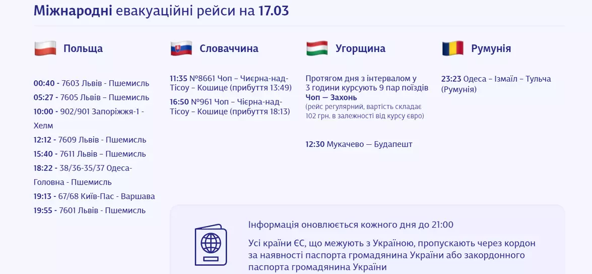 - Та додаємо інформацію про додаткові евакуаційні рейси. Про них будуть оголошувати за потреби щодня.
