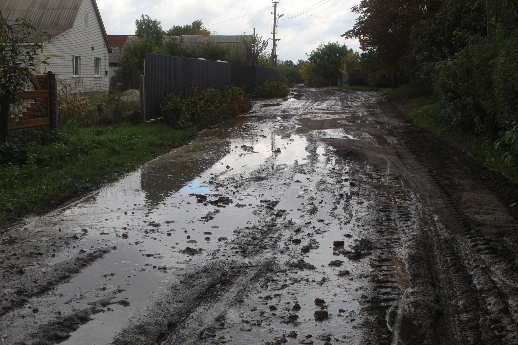 Грейдер гранвідсів з дороги, привезену мешканцями вулиці суміш переколотив з водою. На височинах після грейдерування ділянки дороги були в хорошому стані. В низинах, де стояла вода, утворилася на дорозі не мала товща болота.