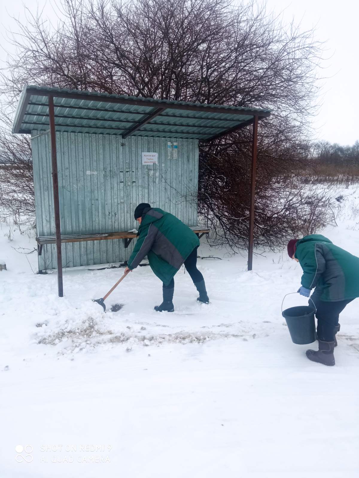 Інша група працівників комунальної служби пішли по зупинкам громадського транспорту і наводили там лад в суботу та неділю.