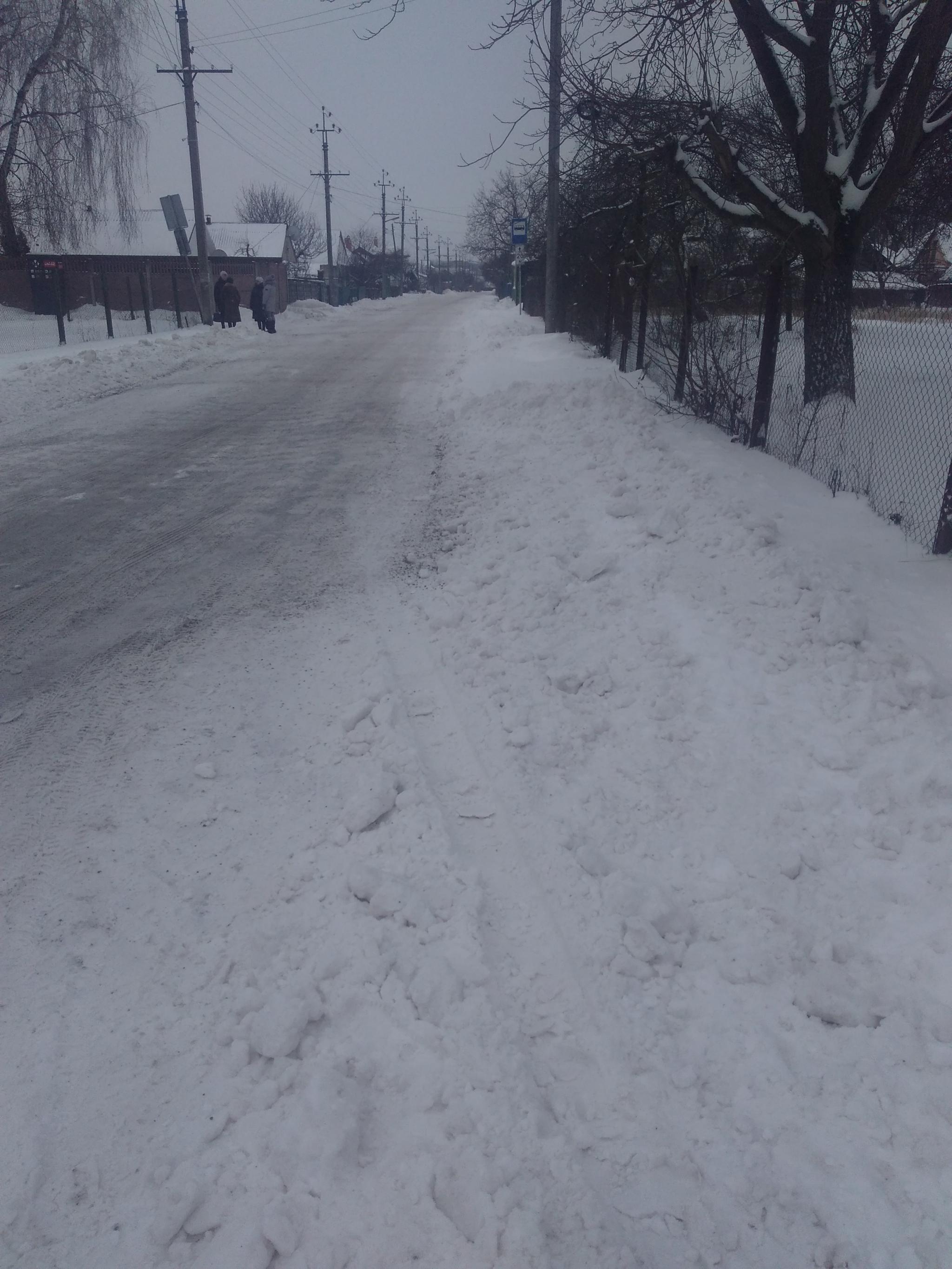 Найбільше роботи було у двірників на вулиці Героїв Майдану. Вулиця широка, тож і снігу на край дороги і на тротуар згребли грейдером чимало. Особливо це було помітно біля зупинки автобуса на Вінницю.