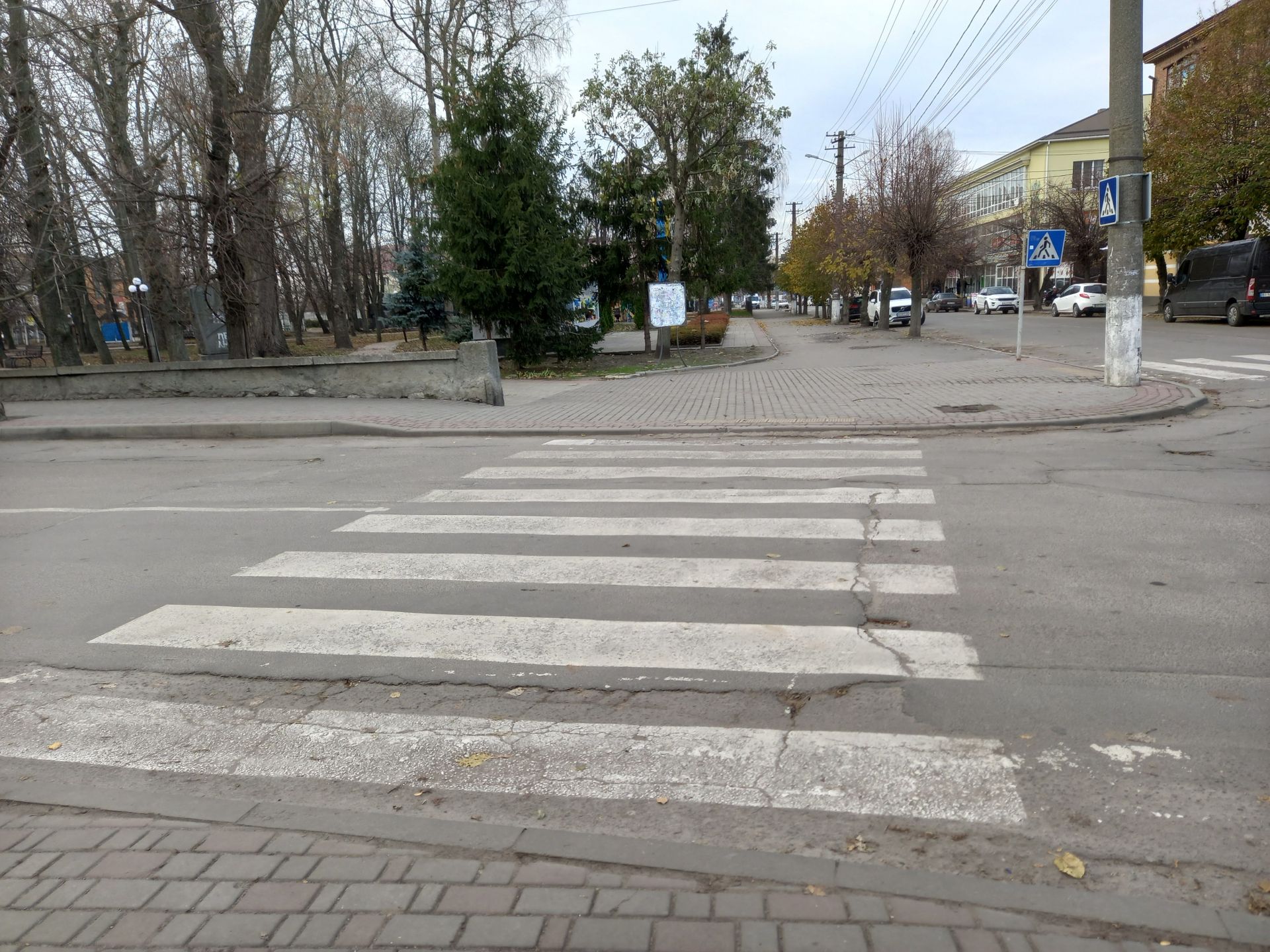 Далі ми попрямували на вулицю Героїв Майдану. Від пам’ятника Грушевському можна без проблем перейти через дорогу із візочком — перед пішохідними переходами бордюри зрівняли з дорогою. У цій частині вулиці, до речі, теж робили капітальний ремонт чотири роки тому. Додамо, що підрядники, які виконували роботи на Героїв Майдану і на Куликівського, різні.