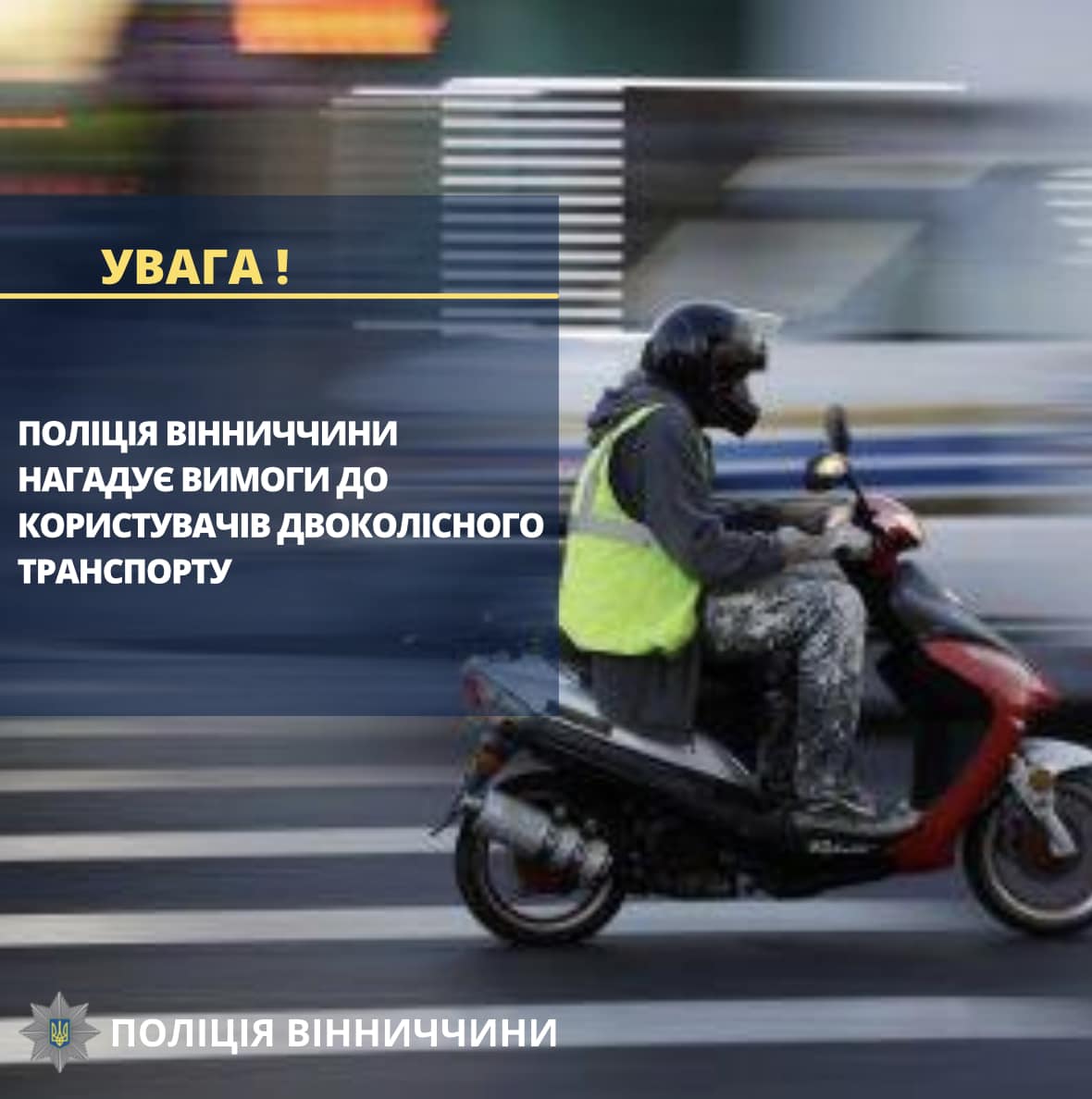 Поліція Вінницької області нагадує — варто пам’ятати, що для керування мототранспортом необхідно мати посвідчення водія з відповідною категорією, свідоцтво про реєстрацію транспортного засобу та державні номерні знаки.