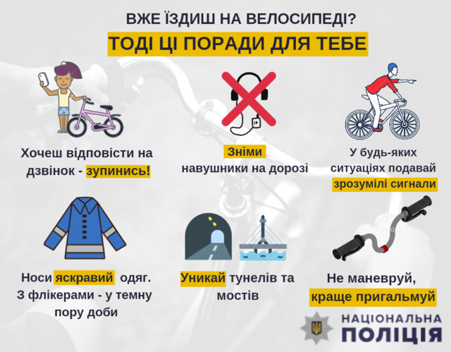 - Тож, заради безпеки всіх учасників дорожнього руху, поліцейські нагадують про основні правила та вимоги до власників двохколісного транспорту.