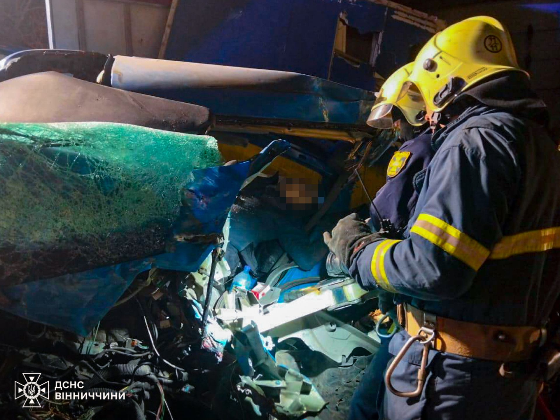 Надзвичайники деблокували з понівечених транспортних засобів постраждалого 60-річного водія автобуса та загиблого 72-річного кермувальника вантажного авто