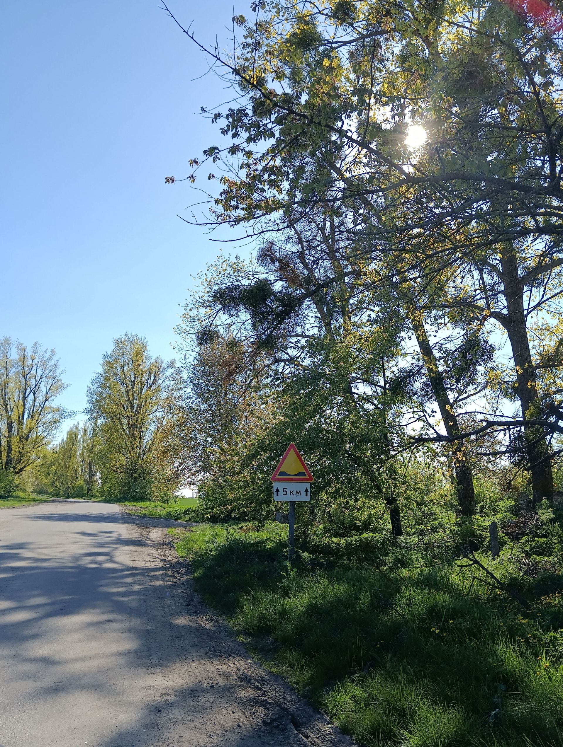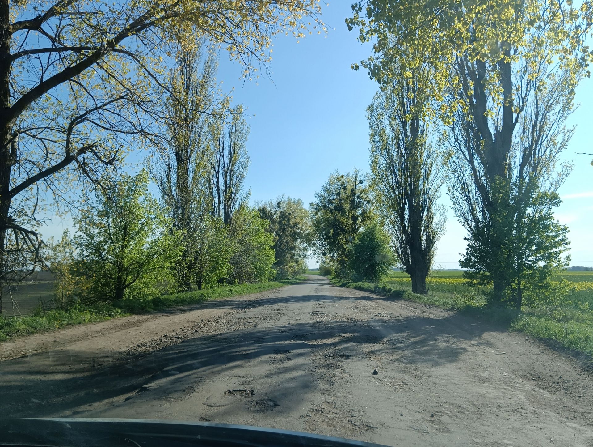 Там навіть знак стоїть — попереду п’ять кілометрів ями. Дорога між селами теж майже вся у дірках.