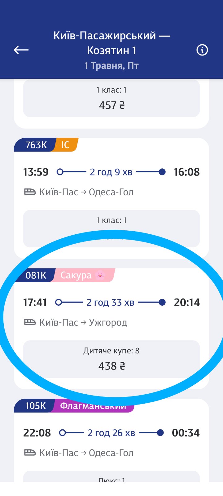 Додатково: поїзд №81 Київ-Ужгород робить зупинку у Козятині. Час — 20:14