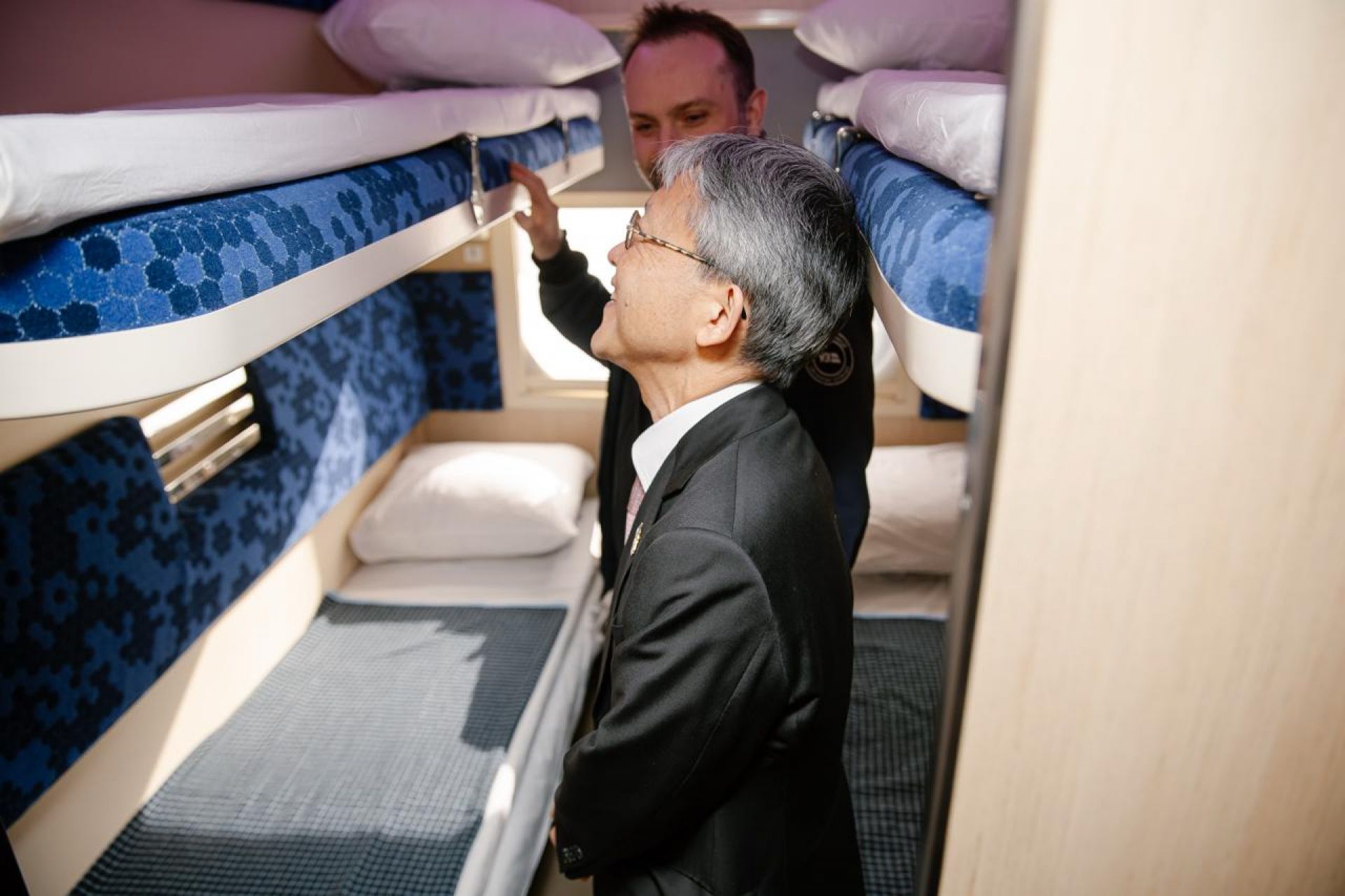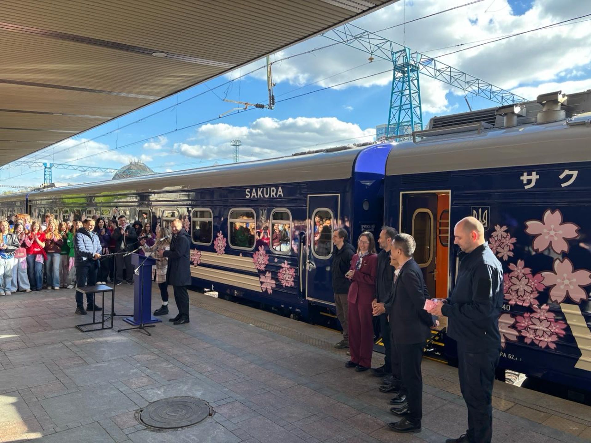 Поїзд «Сакура» з новими вагонами зупиняється у Козятині