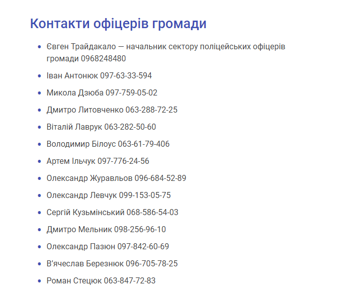 Додамо нашим читачам контакти поліцейських офіцерів Козятинської громади
