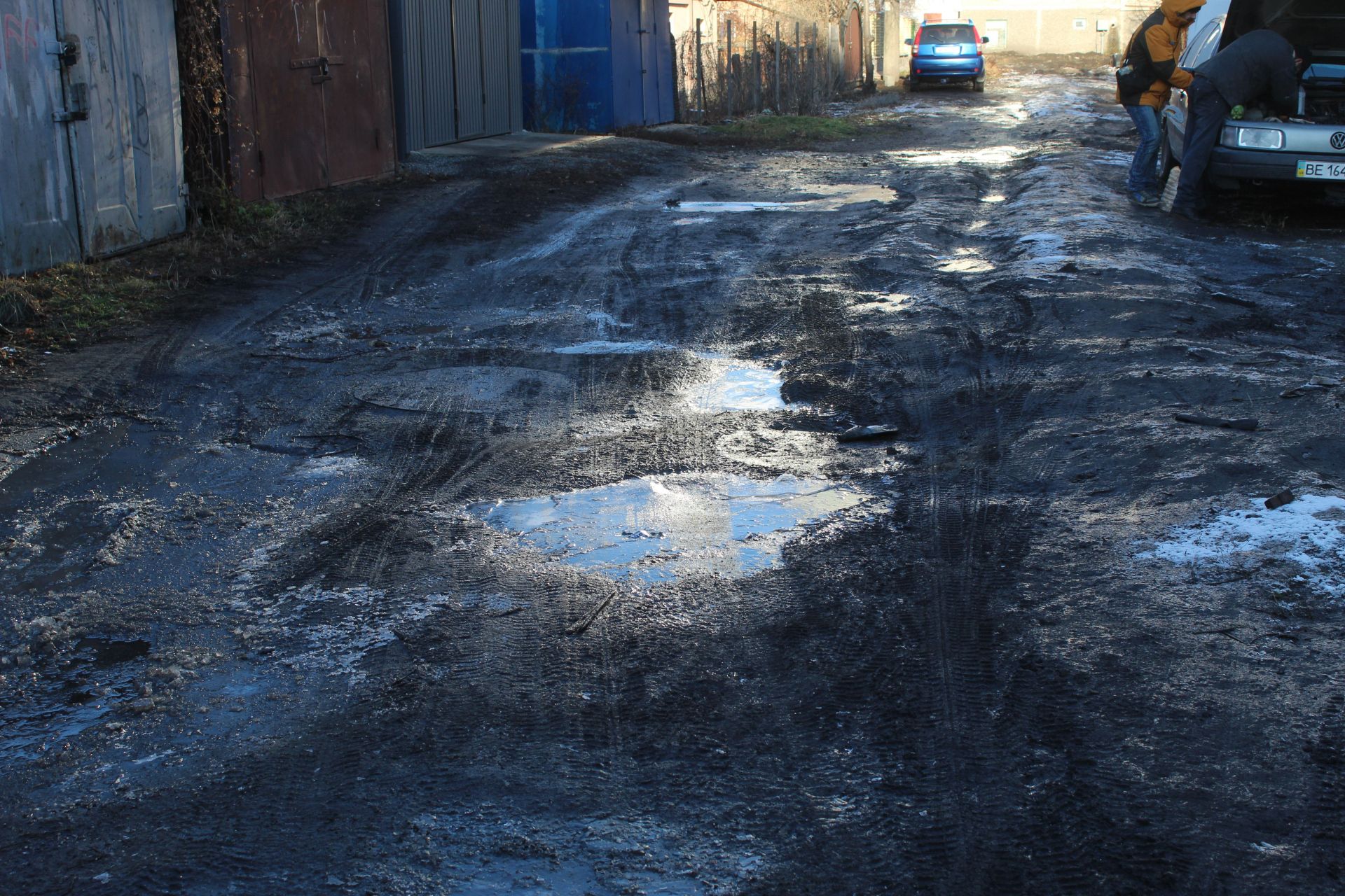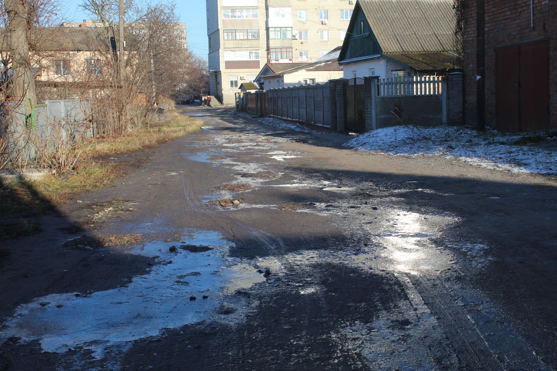 Від вулиці Мічуріна дорога з твердим покриттям, тільки проклали її лише до майданчика сміттєвих баків. Там була потреба в піднятті дороги, тому що люди ходили по воді. А що поклали асфальт тільки до сміттєвих баків – то вже так вийшло. От тільки жителям вулиці Пушкіна, які й далі ходять по болоті, від цього не легше.