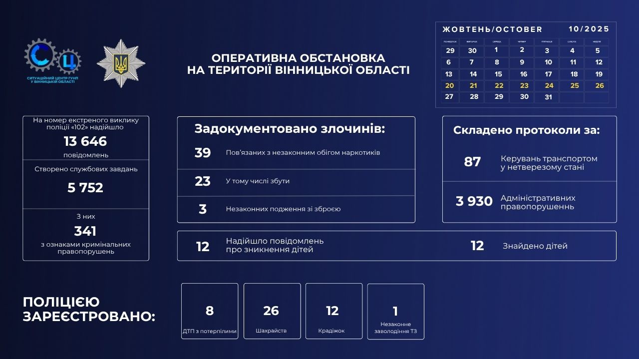 - Аварія сталася близько 5-ї години ранку 27 жовтня поблизу м. Калинівка. За попередньою інформацією, 47-річний водій вантажного автомобіля OPEL допустив наїзд на пішохода, який перебував на проїжджій частині дороги.