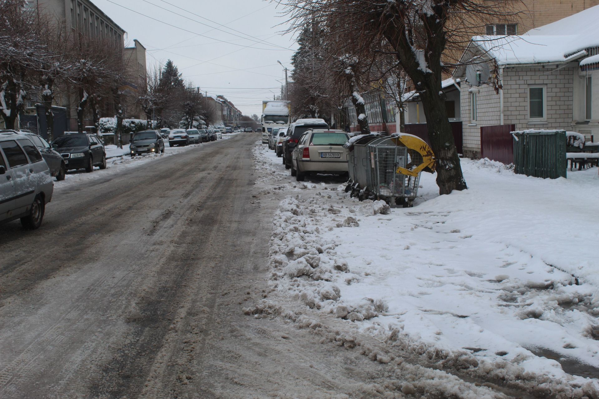 В цей день була посипана лише вулиця Незалежності. Вулицями міста їздила снігозбиральна техніка з піднятою лопатою.Тротуари в цей день не посипали, про що свідчив сніг на кришках контейнерів із соляною сумішшю.