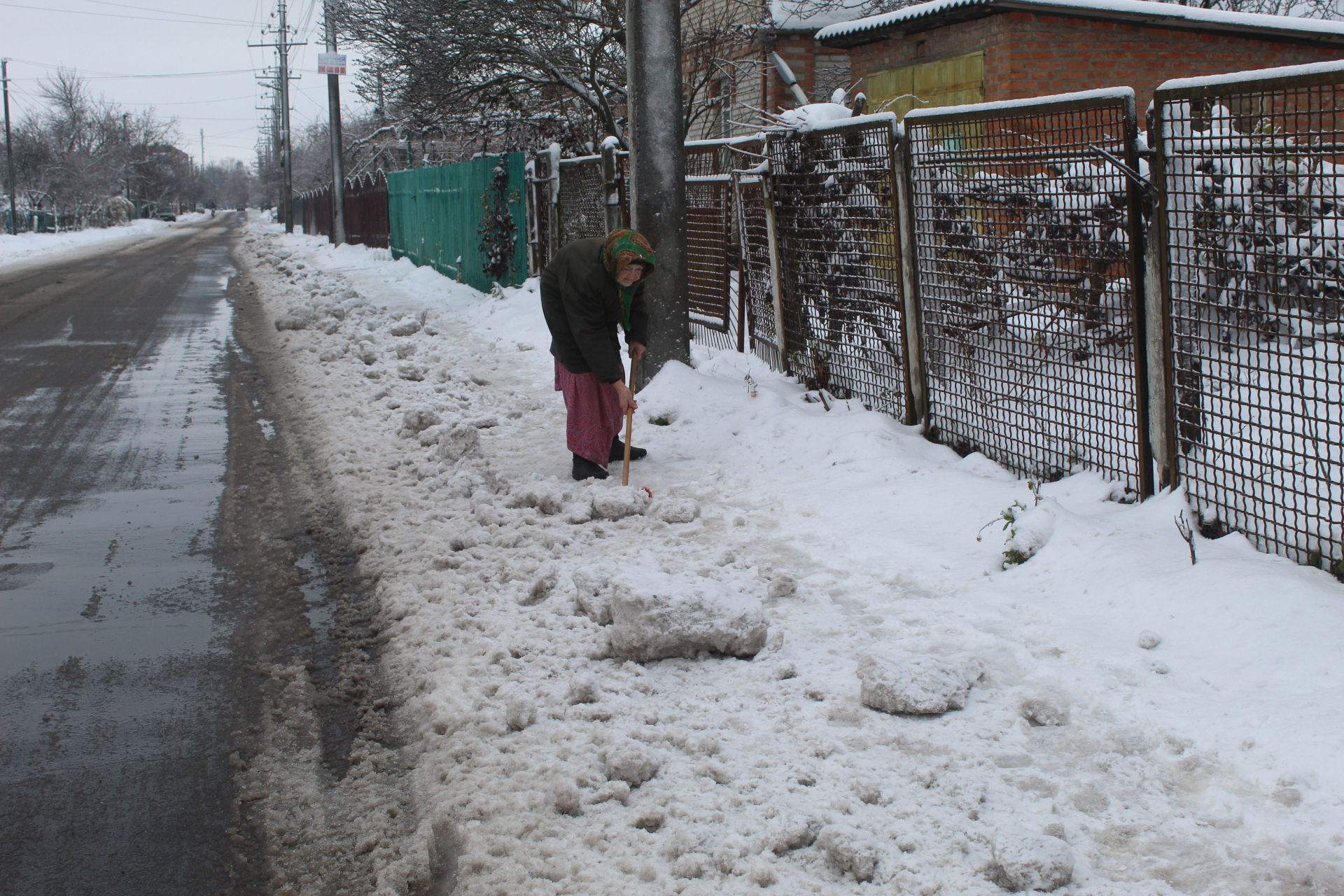 Майже в кінці вулиці Героїв Майдану ми зустріли бабусю Галю. Вона підмітальною щіткою забирала з тротуару груди снігу, що трактор нагорнув, коли чистив дорогу. —Треба прибрати сніжні брили з тротуару. Я ж бачу у вікно, що молодь тротуаром ходить, а вони ж ходять парами. Це мало снігу нагорнули, а коли великий сніг, то є коло чого працювати, — каже пані Галина. — Техніка з дороги сніг забирає і сипле його на тротуар, але кому що скажеш? Тракторист не буде біля кожних воріт сніг відкидати. Про це хтось має думати інший та чомусь не думає, тож доводиться прибирати сніг від воріт і з тротуару самій.