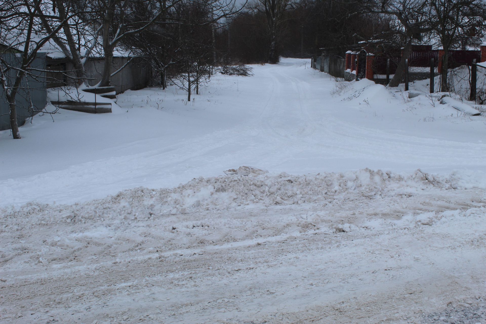 На Білій Казармі головними вулицями проїхав трактор, але так нагорнув снігу на бордюри і на перехрестя із другорядними вуличками, що у сніговому сугробі мало не застрягла «трійка».