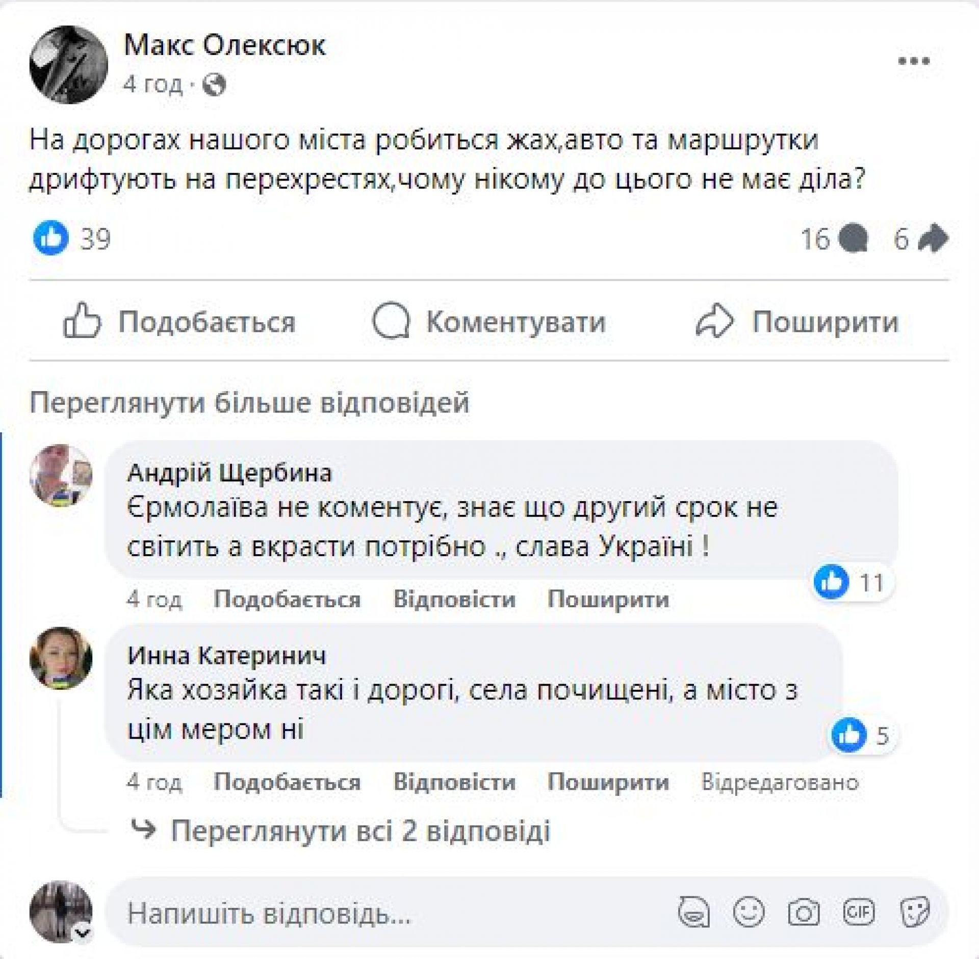 Пишуть про дороги козятинчани і в Фейсбуці. «На дорогах нашого міста жах, авто та маршрутки дрифтують на перехрестях, чому нікому до цього немає діла?», — написав Макс Олексюк в одній із козятинських груп. Дмитро Сімахін написав у коментарях, що на ПРБ, цитуємо, «Ні пройти, ні проїхати».