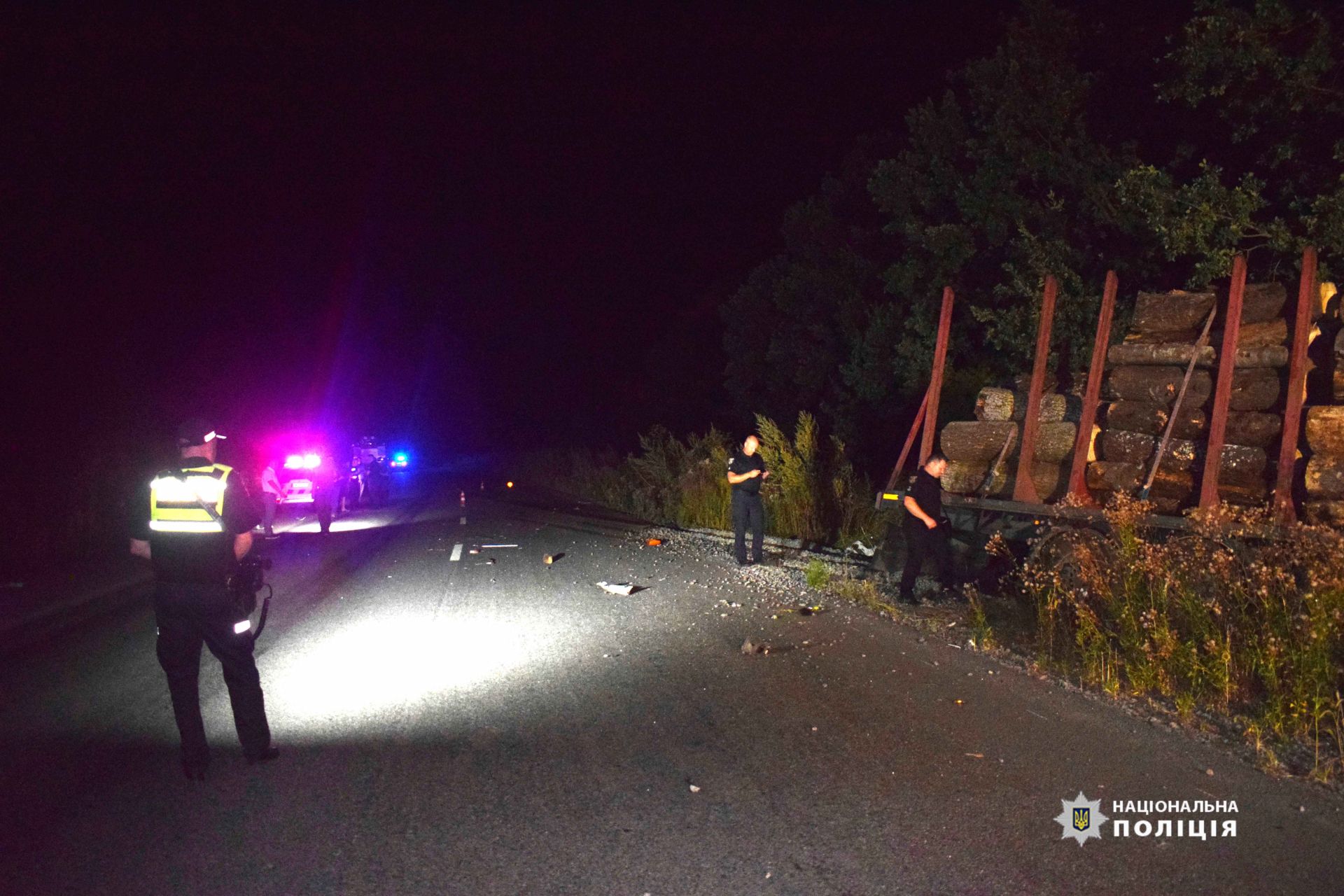 Поліція Вінницької області продовжує встановлювати обставини автотрощі під Бродецьким, у якій легковик зіткнувся з лісовозом.