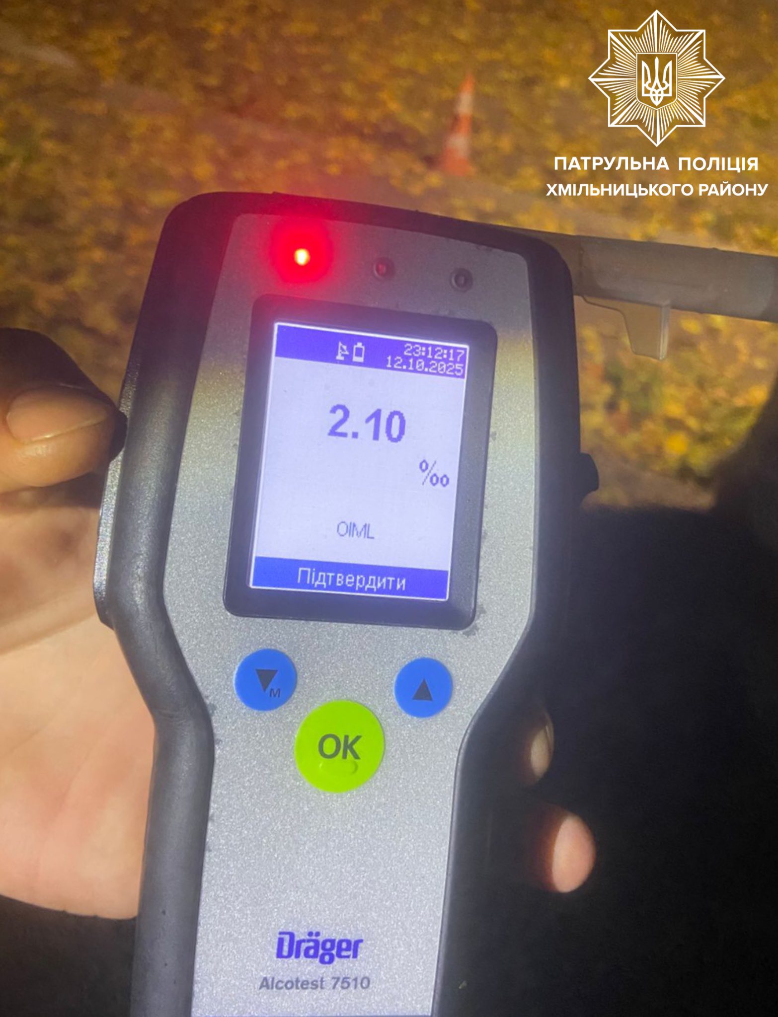 Спілкуючись з керманичем інспектори помітили у нього ознаки алкогольного сп'яніння. Чоловік погодився пройти перевірку на спецприладі Драгер. Результат огляду — 2,10 проміле алкоголю.