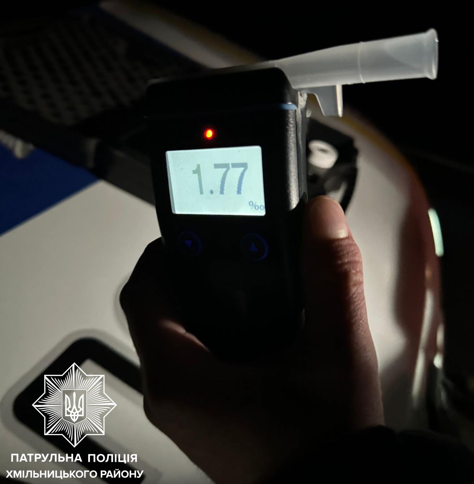 Спілкуючись з керманичем інспектори помітили у нього ознаки алкогольного сп'яніння. Чоловік погодився пройти перевірку на спецприладі Драгер. Результат огляду — 1,77 проміле алкоголю.
