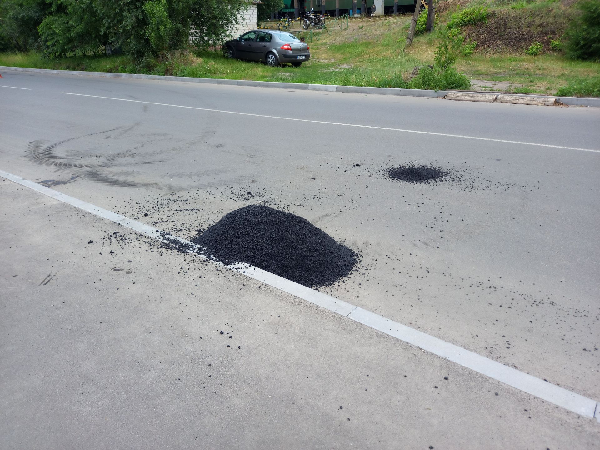 Чому асфальтове покриття почало руйнуватися — судити не беремося, позаяк ми не є експертами. Можливо причина в якості, можливо в тому, що дорогою постійно їздили автівки і асфальт просто не встиг застигнути.