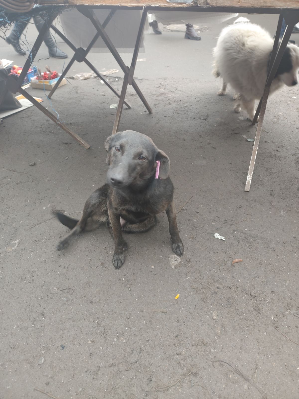 На годиннику полудень і в цей час почали розходитись собаки з ринку Василя Земляка. Не хотіла нікуди йти грайлива, стерилізована, короткошерста «Муха». Доля цієї собаки була жахливою, її хворою викинули на вулицю. Завдяки чуйним людям її пролікували і стерилізували.