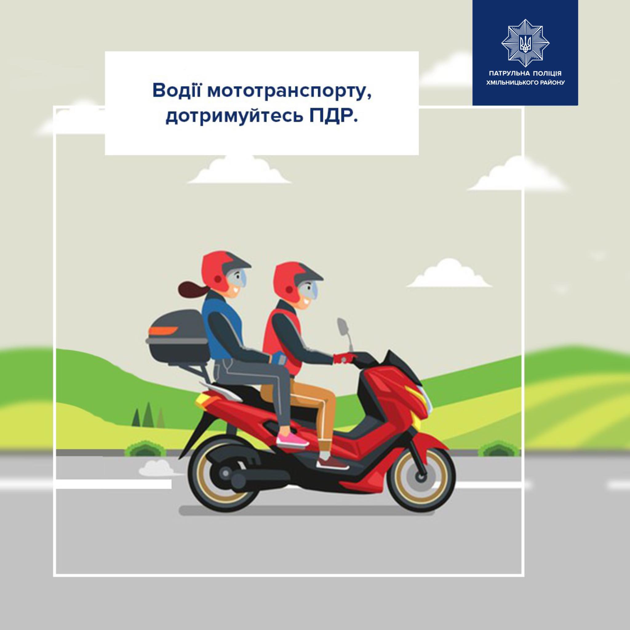 - Суворо заборонено перевозити на мотоциклі чи моторолері людей, які сидять боком або дітей віком до 12 років, а також осіб у нетверезому стані.