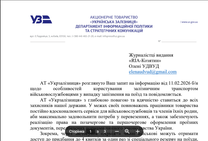Ми зв’язалися з працівниками вокзалу станції Козятин-1, розповіли їм про цю ситуацію і хотіли взяти коментар, однак давати коментарі нам відмовилися. Після цього ми надіслали інформаційний запит до Укрзалізниці з проханням надати відповіді на такі питання:
