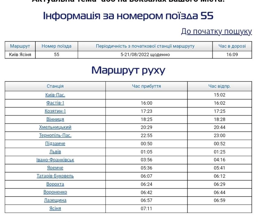 Від сьогодні, 5 серпня Укрзалізниця відновлює курсування поїзда №55/56 сполученням Київ — Ясіня