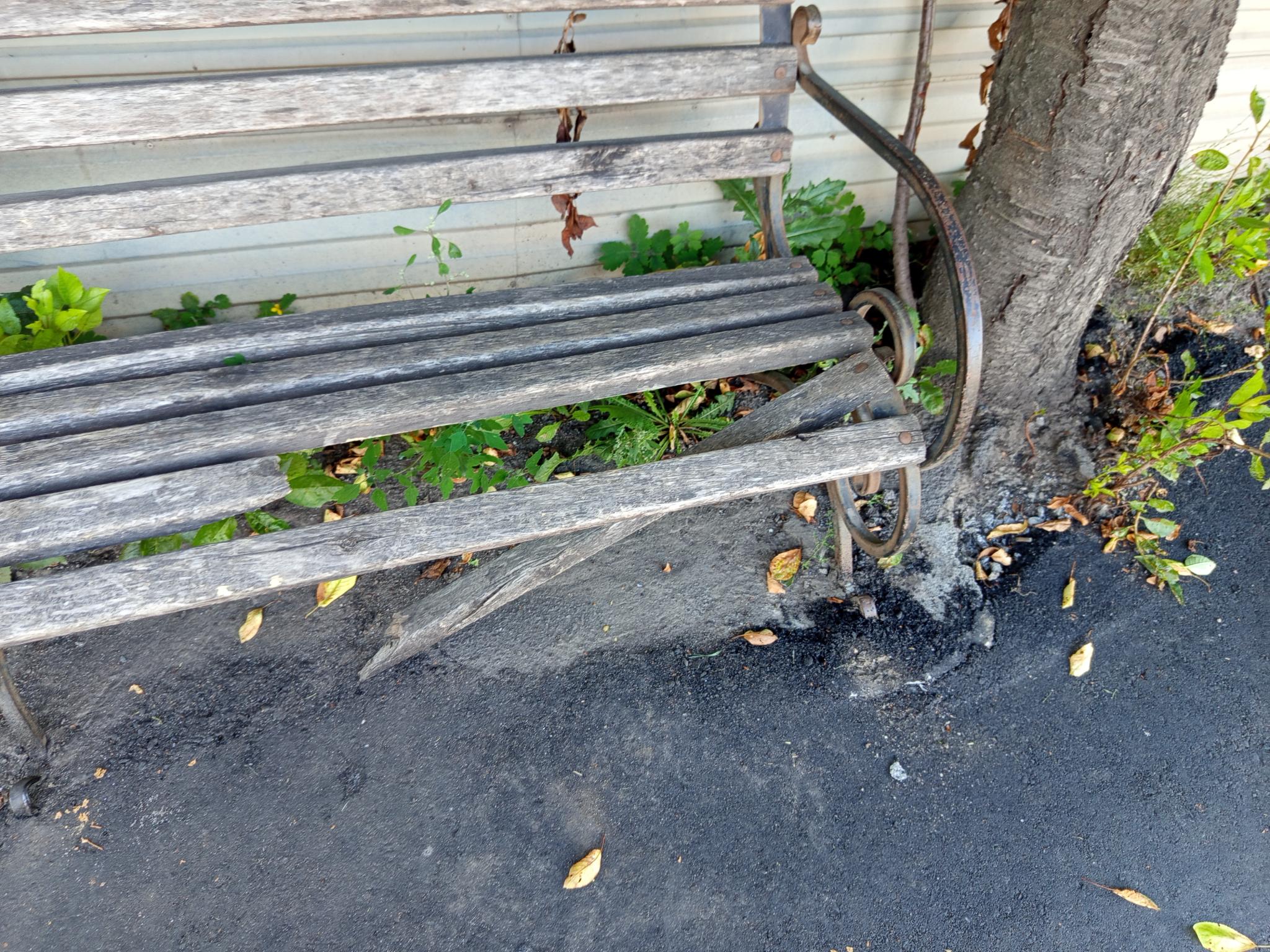 - Чи то на неї щось впало, чи хтось сів невдало, та тепер один зі щаблів лавочки звисає до землі