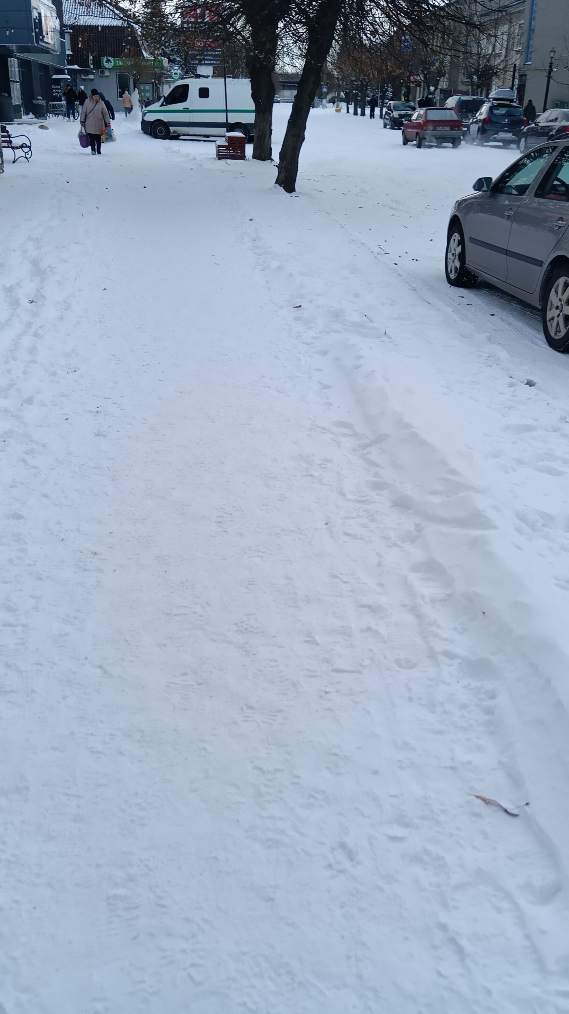 IvanСкільки раз за цю зиму випадав сніг і скільки раз його чистили? Напевне це перший або другий раз його чистили за всю цю зиму. Але і там де чистили - люди розчистили біля себе тротуари - засипали все розчищене, люди тепер ходитимуть там де їздять автомобілі. -