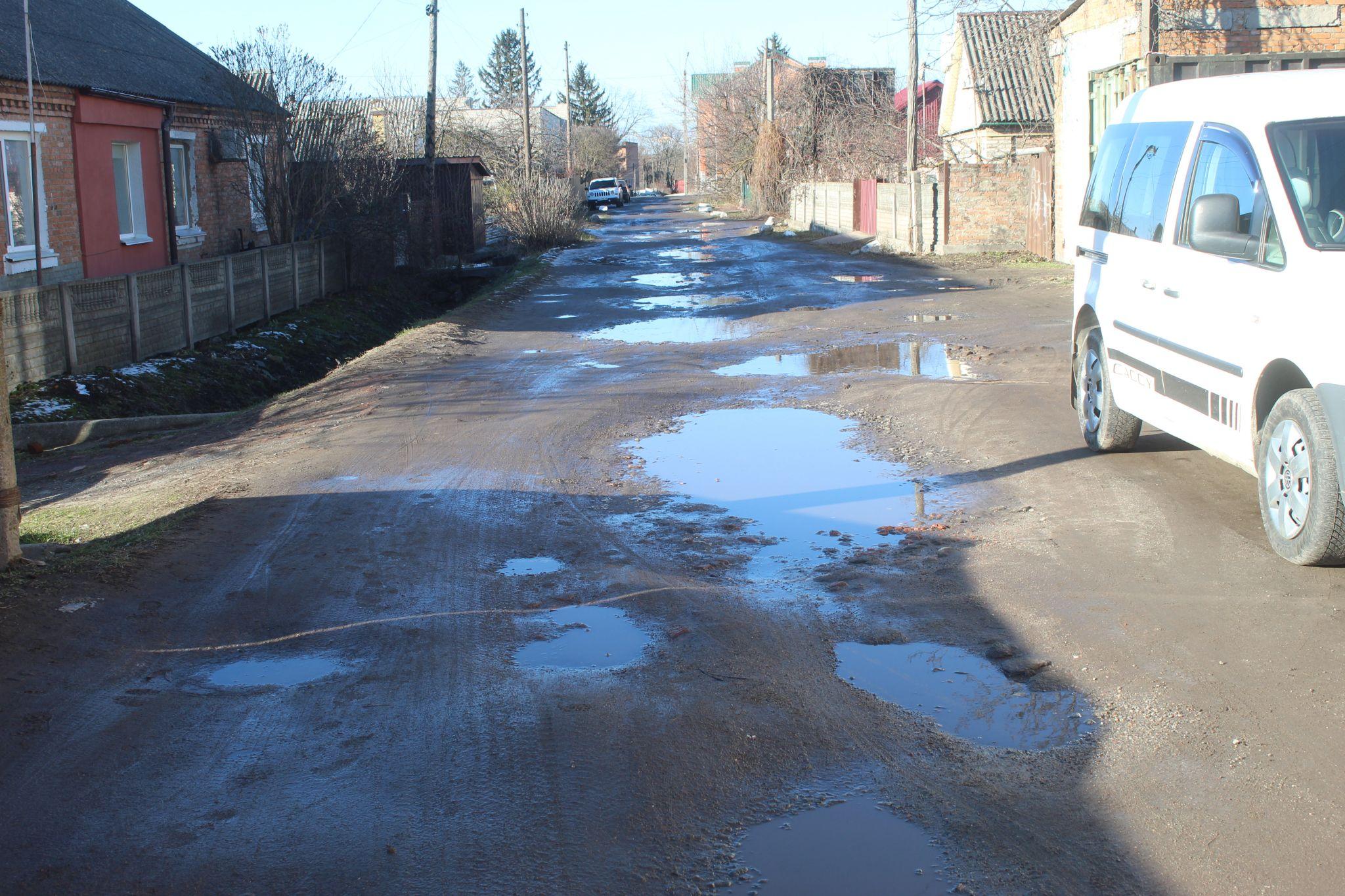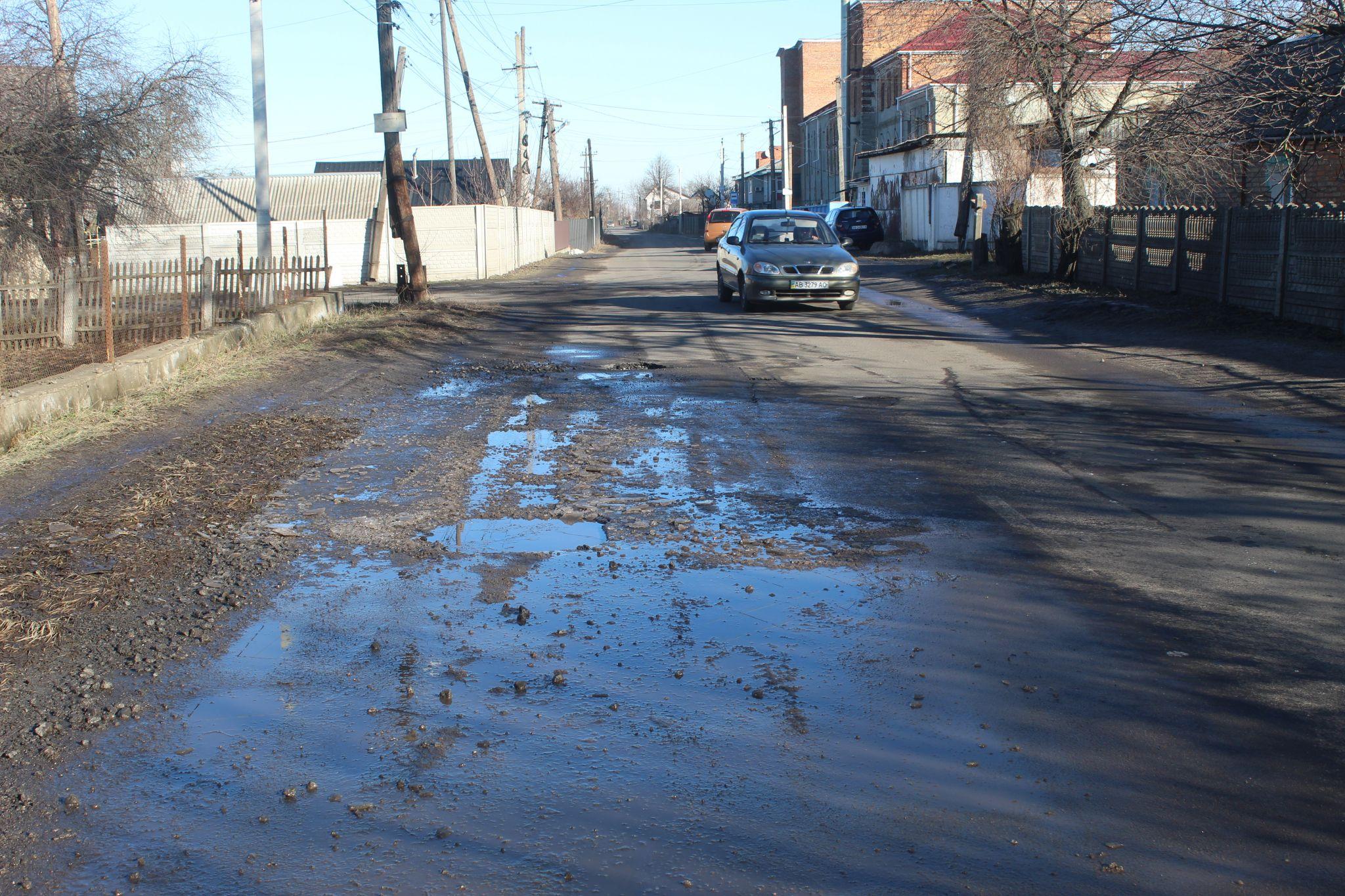 На вулиці Степана Бандери кожного року проводять ямковий ремонт. Коли закрили міст через колії на Білоцерківській трасі, багатотонні фури їхали вулицями нашого міста і убили дорогу, зокрема на вулиці Бандери. У ЖКГ знають, що на деяких ділянках дороги треба робити капітальний чи хоча б поточний ремонт. Тільки чи знайдуться в бюджеті під час військового стану такі кошти?