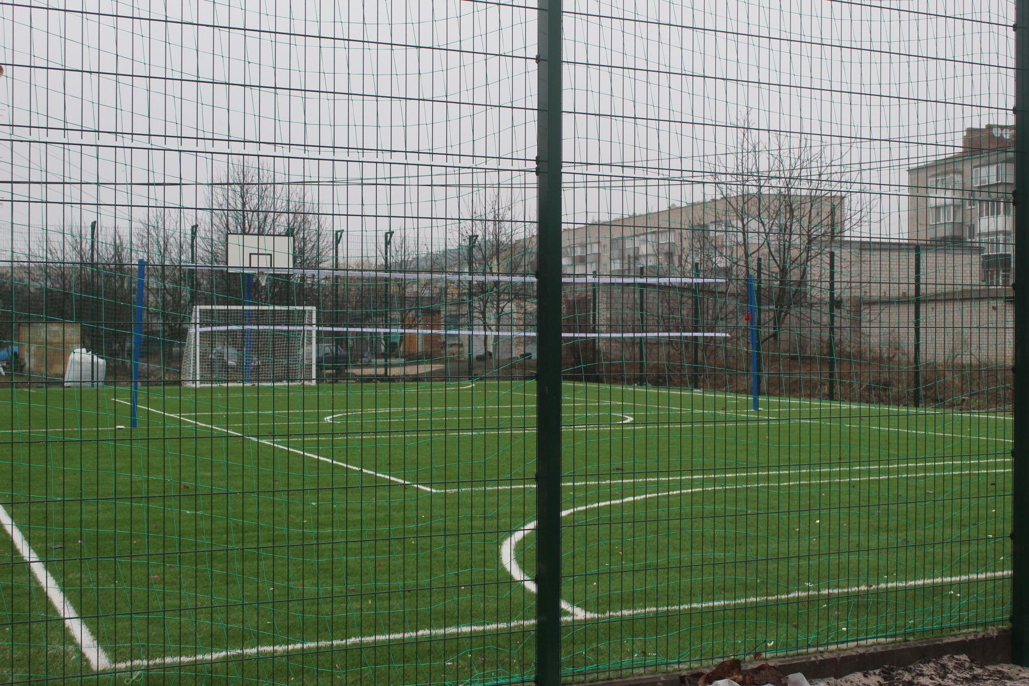 І ось вже стоїть зелений красень з футбольними воротами, волейбольною сіткою та щитатами для гри у баскетбол. Є розмітки і для інших спортивних ігор.