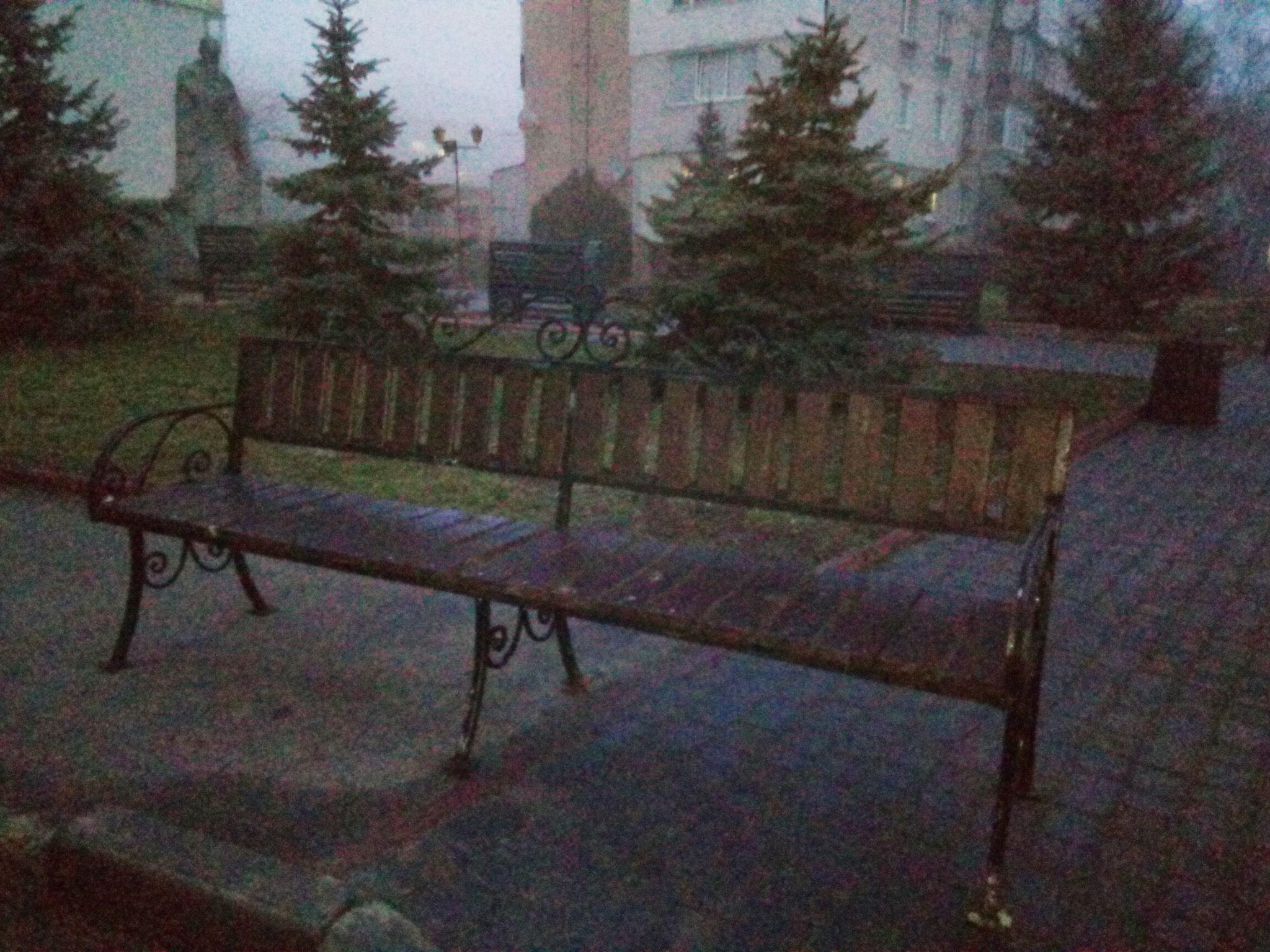 Ранок вівторка, 28 січня. На годиннику сьома. Місто вкрив густий туман. Козятинчани поспішають у своїх справах: хто йде на роботу, хто — до лікарні, хто поспішає на автобус, що зупиняється біля «Лялі». І озираються, проходячи по тротуару обабіч скверу біля пам’ятника Грушевському. Їх увагу привертає лавка, що стоїть прямісінько на пішохідній зоні, і без того доволі вузькій. Вочевидь, це вночі хтось із козятинців, а може й навіть гостей міста (бо ж поруч готель) «постарався». Адже ще вчора ввечері лавки на тому місці не було.
