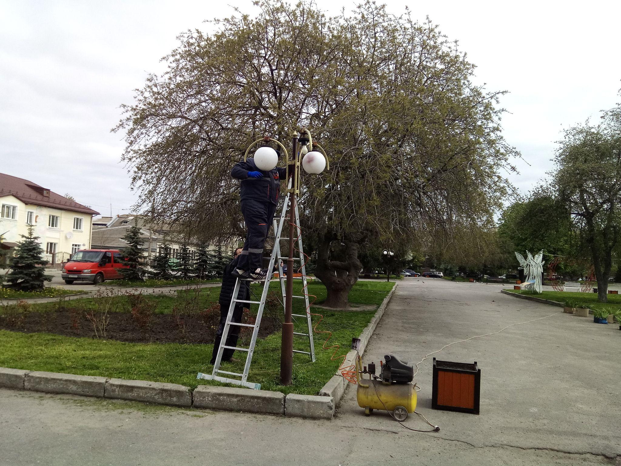 У п’ятницю, 5 травня заходи із благоустрою площі продовжилися. Вдень кипіла робота. Фарбували лавки, ліхтарі, на яких вже також треба було оновити фарбу.