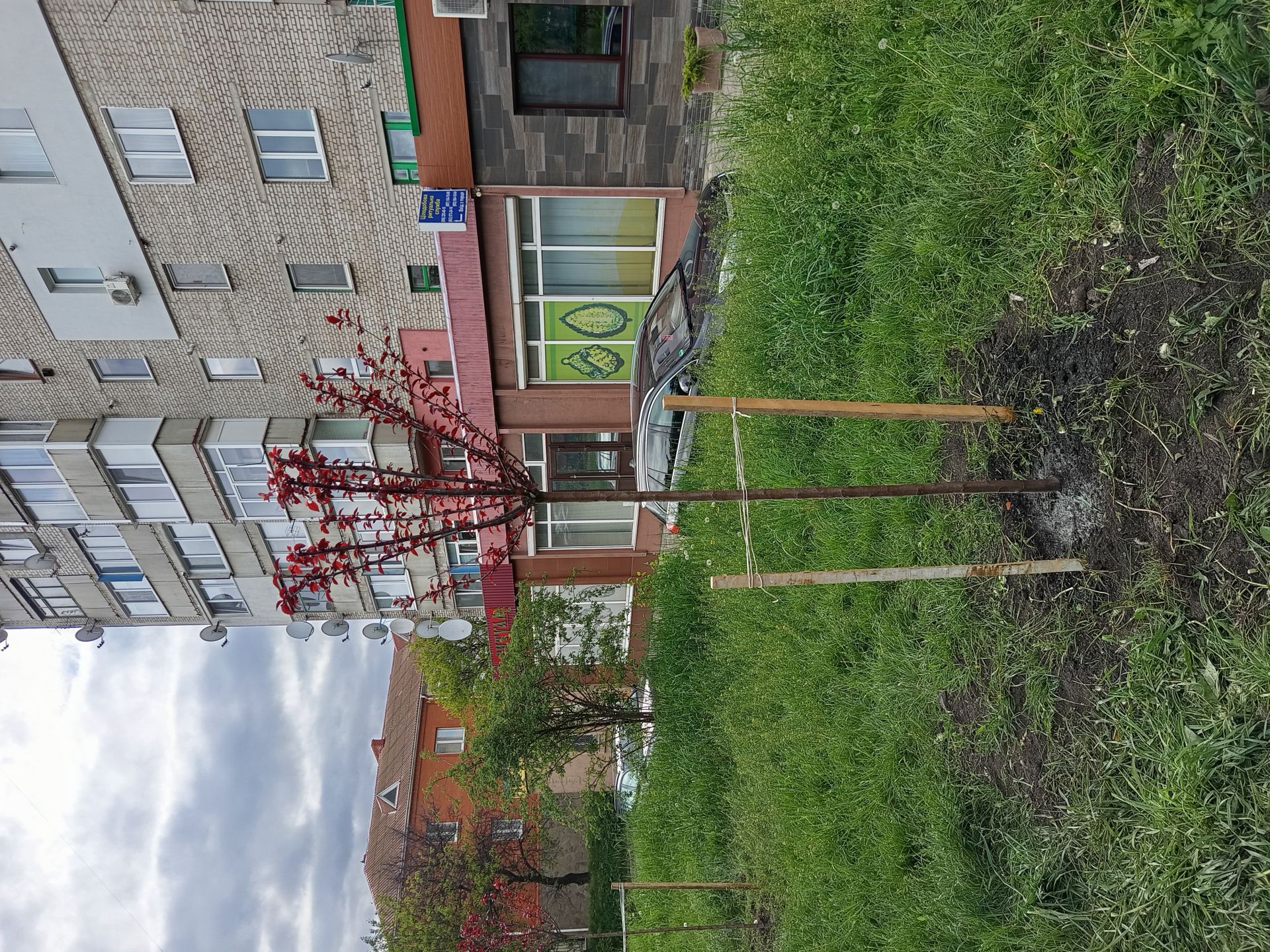 На вулиці Героїв Майдану тепер ростуть нові дерева. Три саджанці з’явилися навпроти дев’ятиповерхового будинку під номером дев’ять. Листя дерев має насичений багряний колір. Зовні саджанці схожі на декоративну сливу «Піссарді». Сподіваємося, вони приймуться і за декілька років стануть великими деревами.