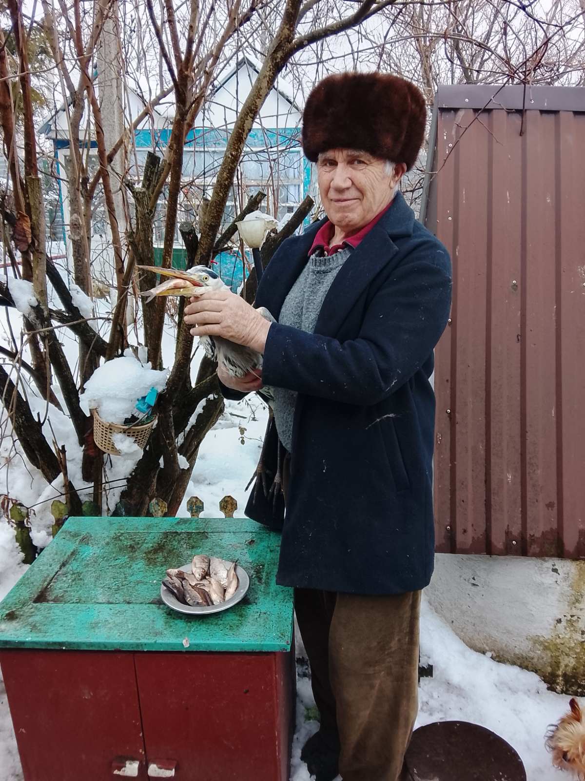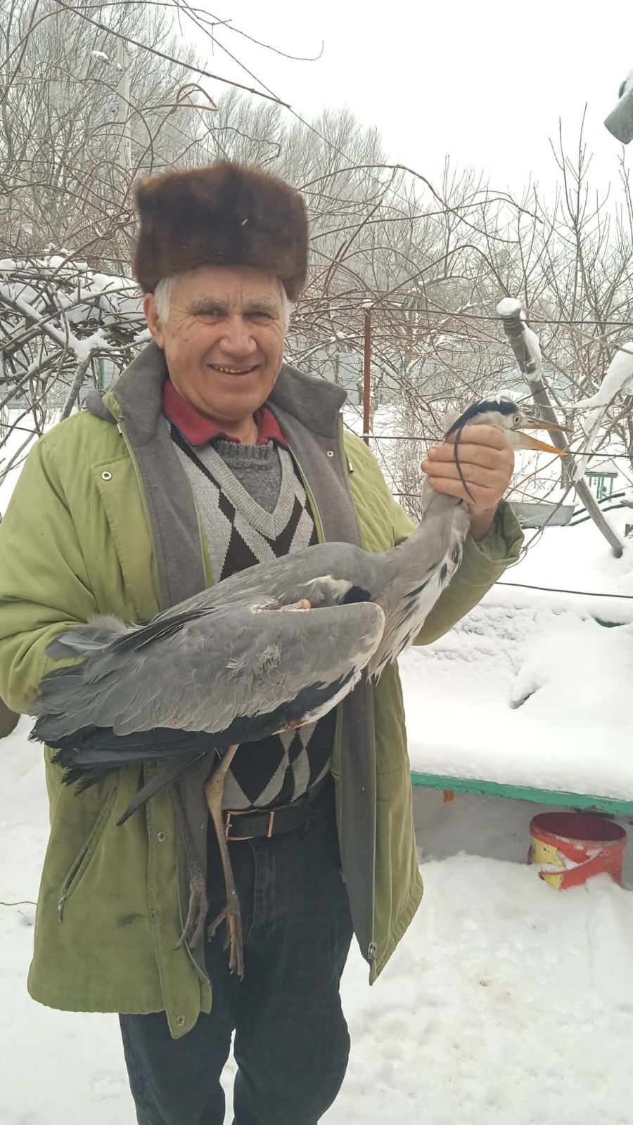 Цапля трохи заспокоївшись, підкорилася спасителю і вже не кусаючи пішла з ним до утепленого хліву.