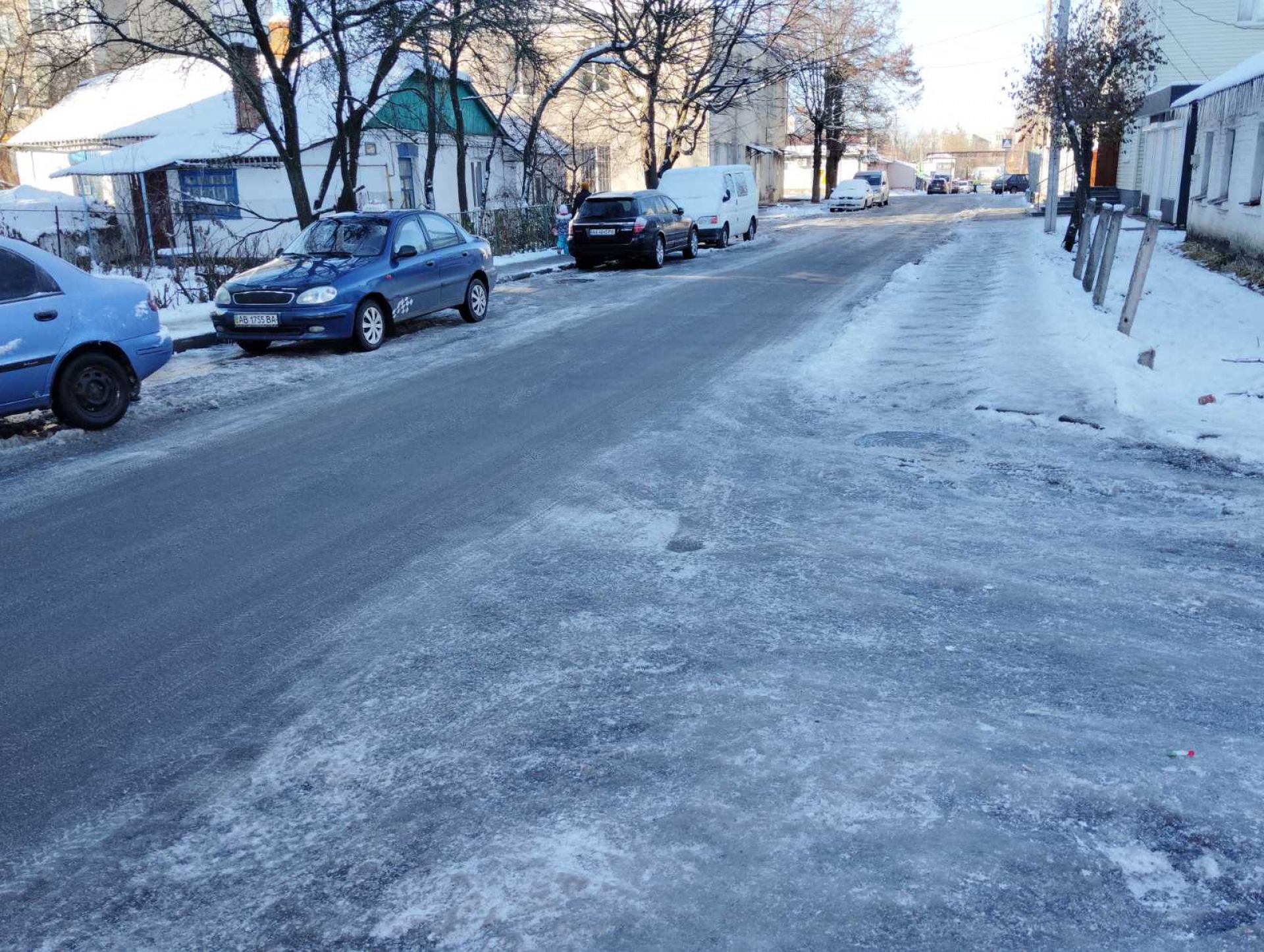Не краща ситуація і в селі Козятині — як розповіли нам наші читачі, Центральну вулиця більш-менш посипана, а на проміжних вуличках таких як Пирогова, справжня ковзанка, як на на шматочку вулиці Склярова у Козятині.