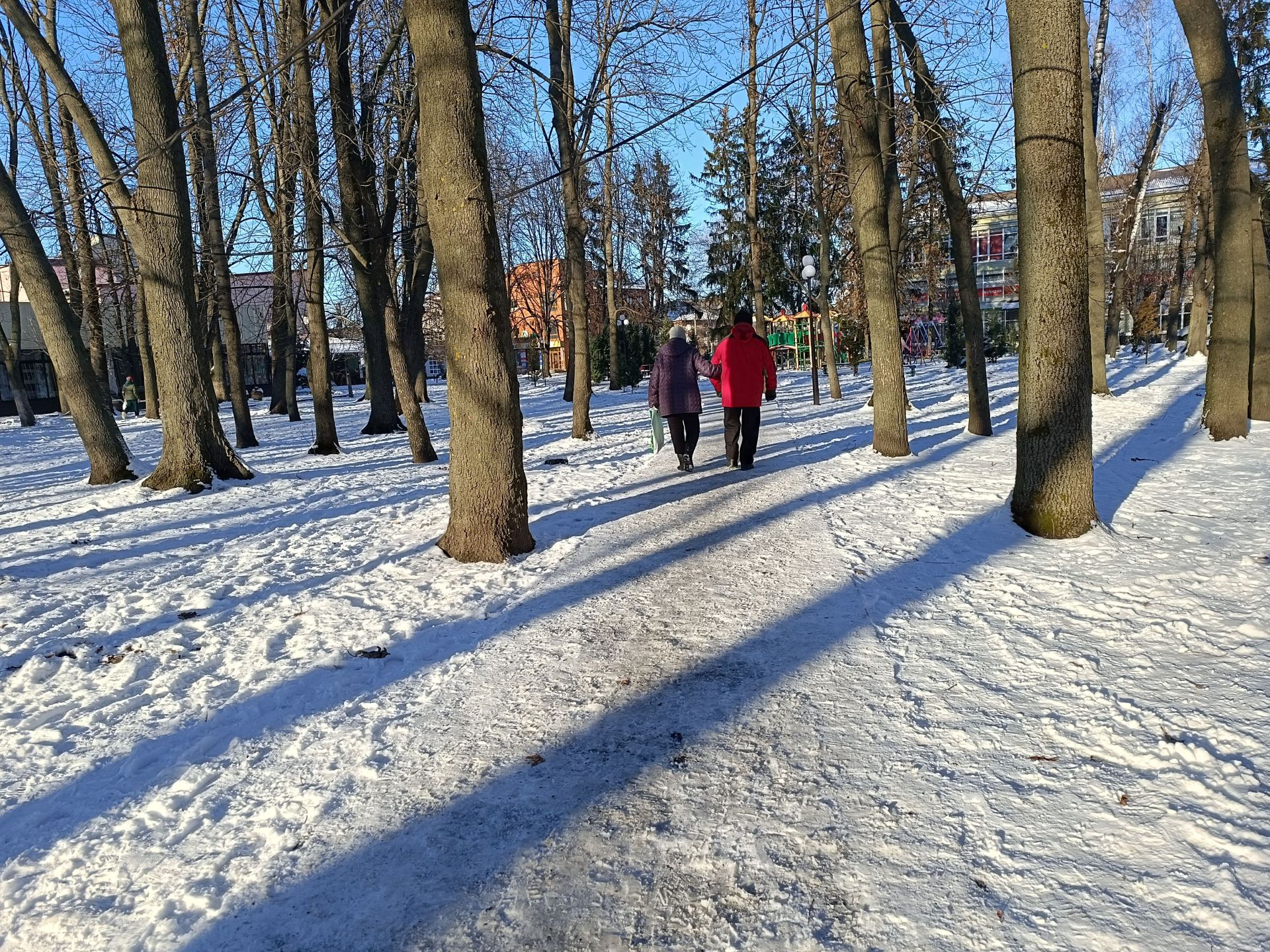 У понеділок, на додачу до того, що нарешті посипали тротуари, ще й потепліло. Вдень температура піднялася до 0 градусів, тож на деяких ділянках, куди світило сонце лід почав навіть танути.