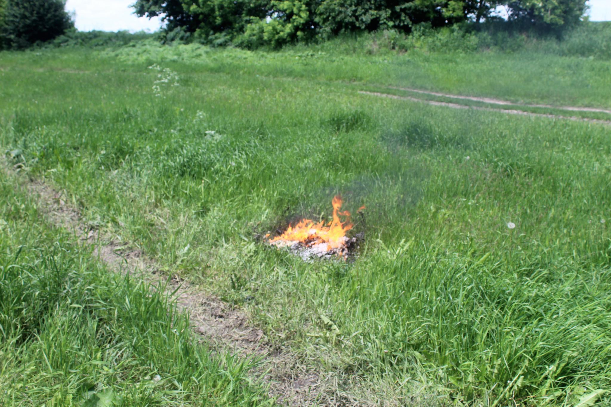 Там же, біля ставочка, ми помітили чоловіка, який дивився як догоряє багаття. Помітивши нас, він сів у автівку й поїхав. А палив він каністри, в яких до цього були отрутохімікати.