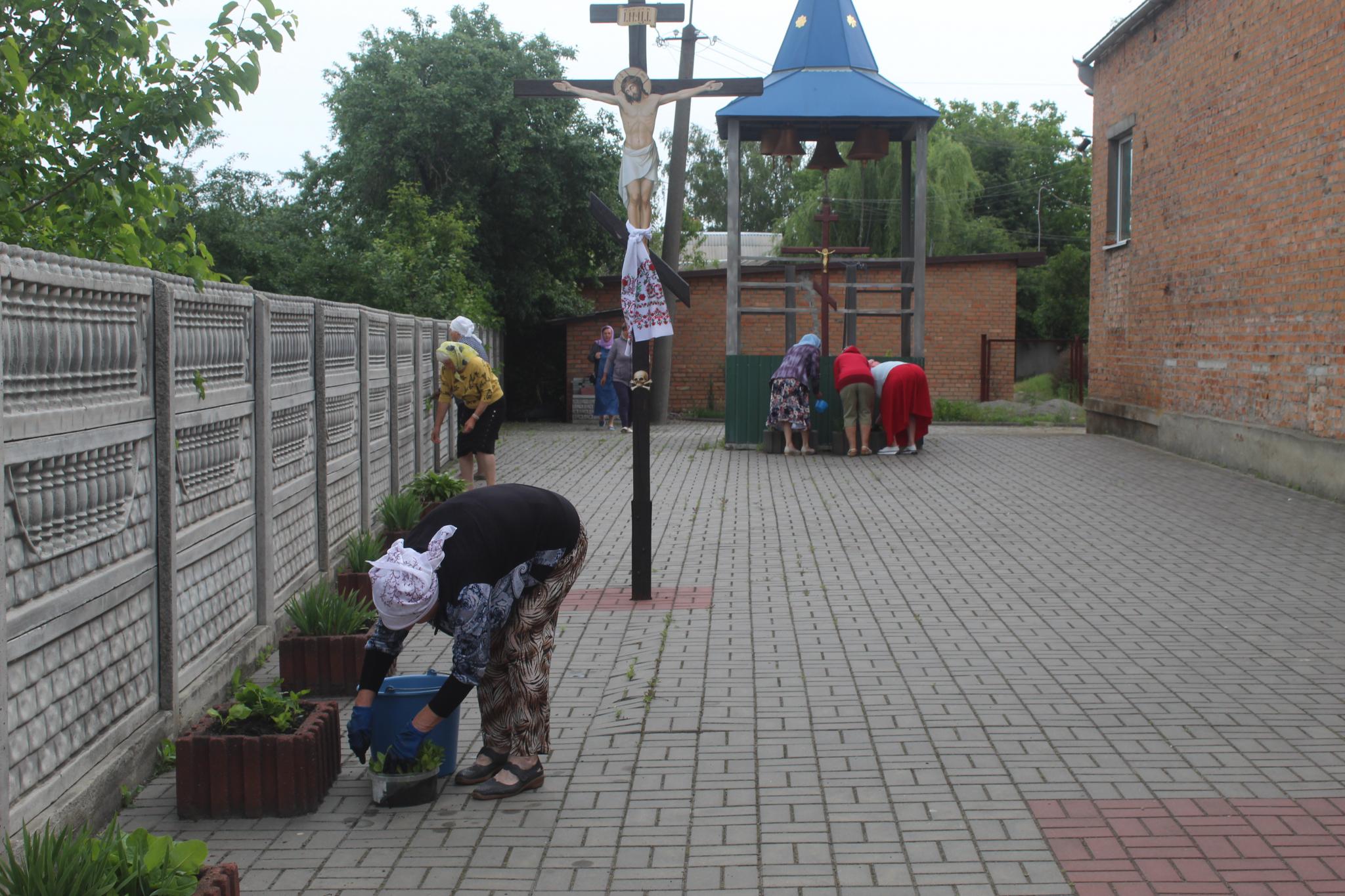 Останнє фото ми зробили на вулиці Щасливій. Там прихожани храму Покрови Пресвятої Богородиці висаджували на подвір’ї церкви квіти, які принесли з дому. Квітнички церкви поповнились чорнобривцями, айстрами, маргаритками. На цій позитивній ноті ми й завершили нашу фоторепортаж.