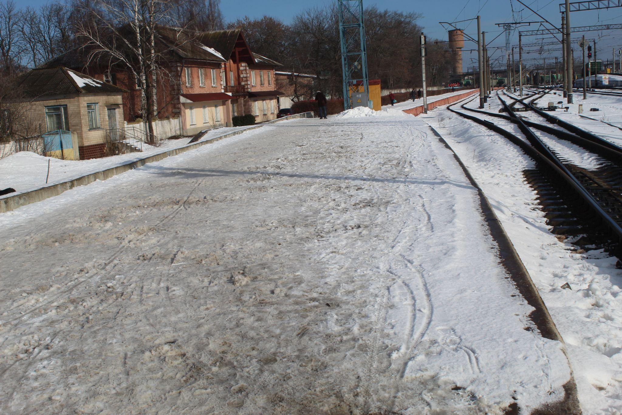 З ПРБ поїхали на залізничний вокзал. А там, як кажуть, навіть кіт не валявся. Хто не забув, який випав сніг в березні 2013 року, той, мабуть, пам’ятає, що за день перон на Київській та Шепетівській платформах був почищений. Скільки років нашому вокзалу – стільки років був почищений від снігу перон. А інакше не могло бути.