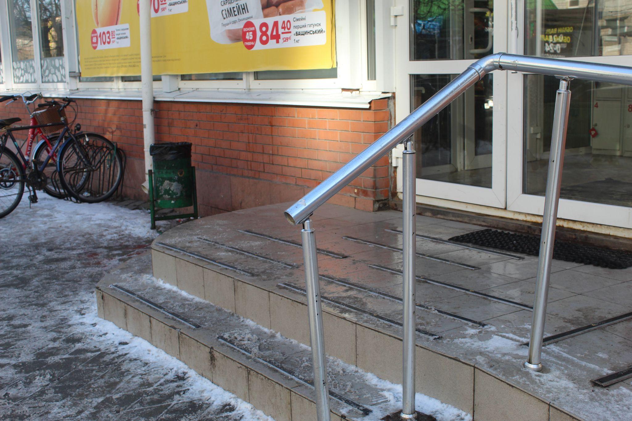 Окремо хотілося зупинитися на пандусах і сходинках з плитки. Вони зовні красиві, але взимку дуже слизькі. Добре зробили в клієнтському просторі «Вінницягазу». Вони на слизькі сходинки поклали дерев’яний трап.