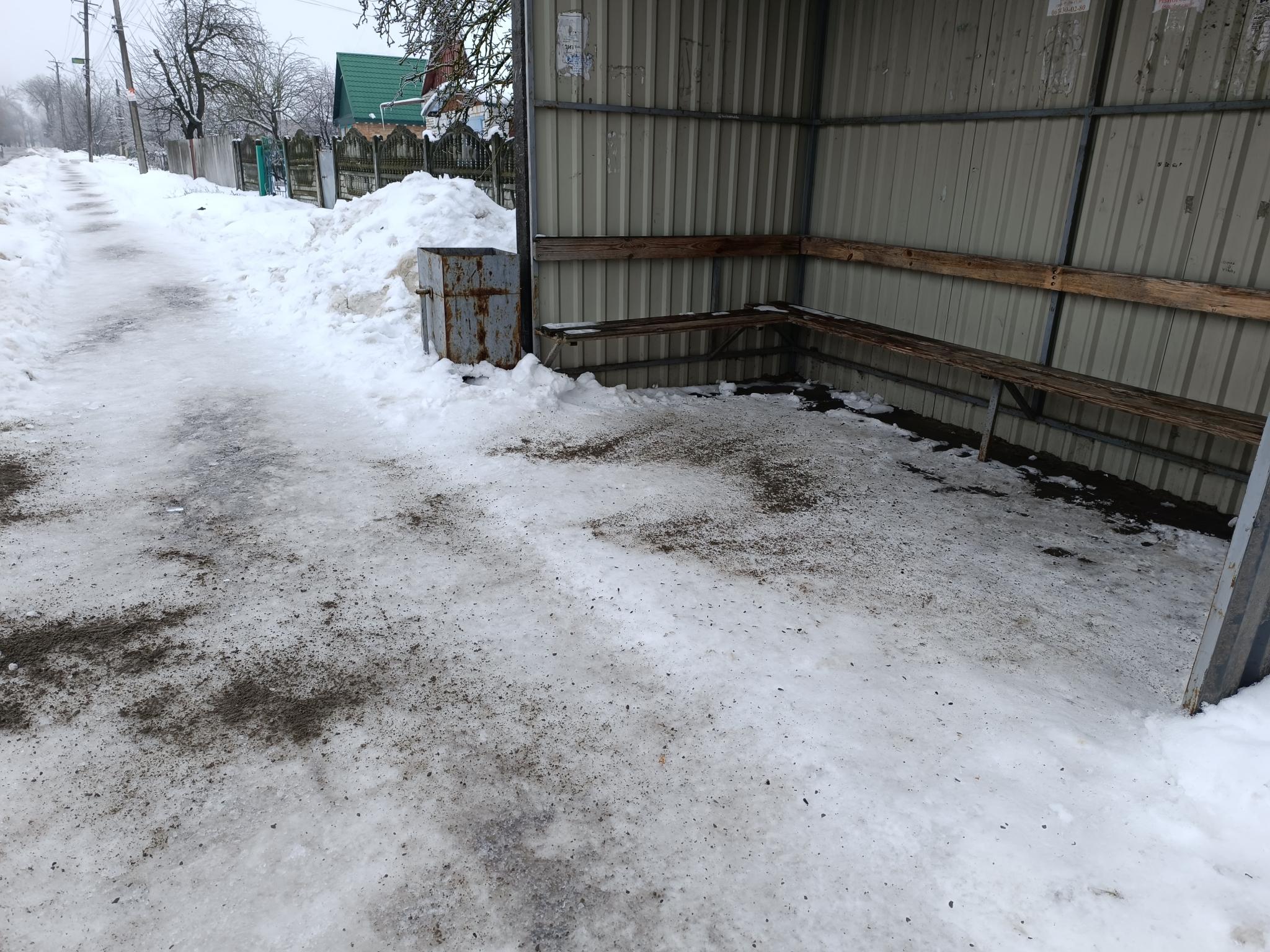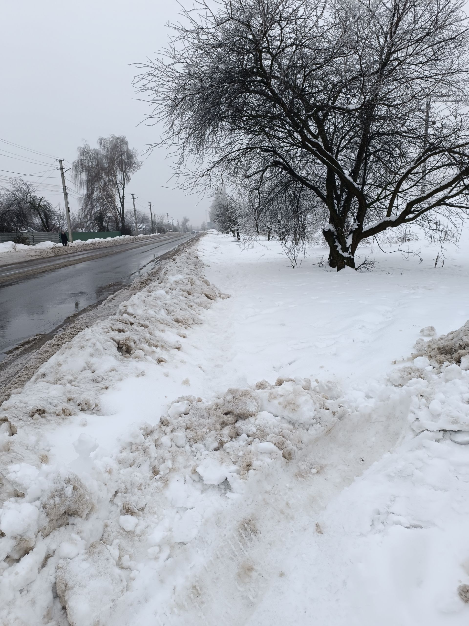 Під’їзд до нової прозорої зупинки на Куликівського від снігу розчистили, а ось тротуар, котрий веде до неї — ні. Пішохідна доріжка досі в сніговому полоні. Як дійти до зупинки — невідомо.